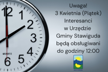 Urząd Gminy Stawiguda informuje, że w związku z wystąpieniem awarii na sieci wodociągowej w miejscowości Stawiguda, w dniu 13.03.2026 r. (piątek) w godzinach od 10:00 do 11:00 nastąpi przerwa w dostawie wody dla mieszkańców ul. Olsztyńskiej 66, 68, 70, 72 w Stawigudzie.