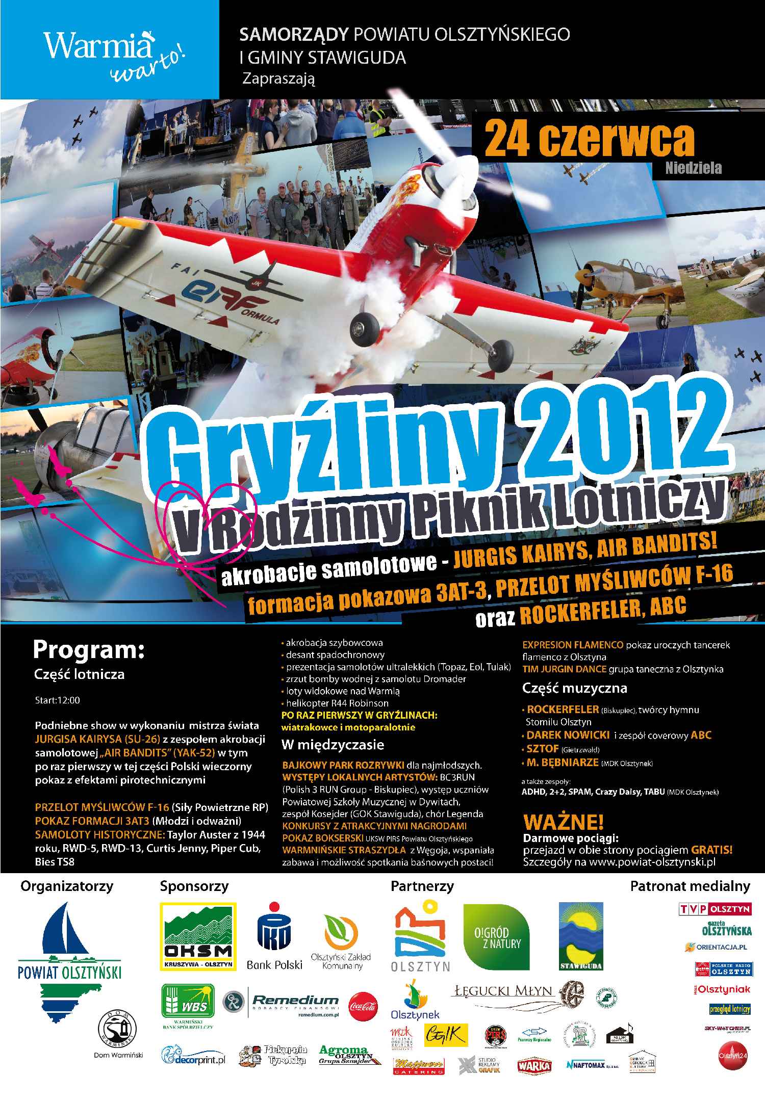 Patronat medialny: TVP Olsztyn, Radio Olsztyn, Gazeta Olsztyńska, orientacja.pl, olsztyn24.com, Nasz Olsztyniak, sky-watcher.pl, Przegląd Lotniczy, pokazylotnicze.pl,