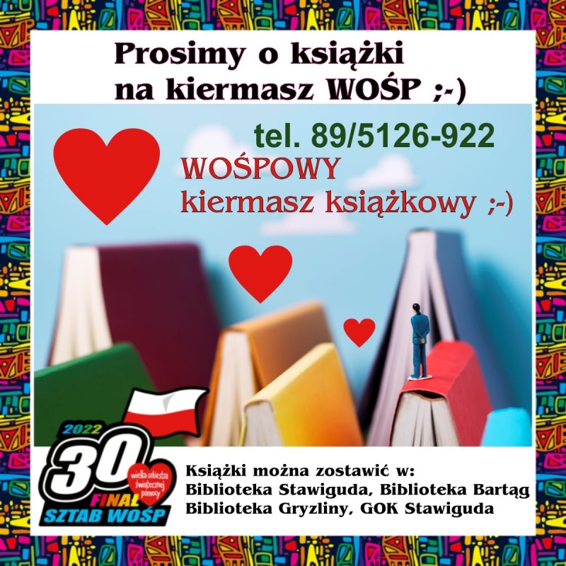 Gminny Ośrodek Kultury w Stawigudzie poszukuje książek na WOŚPowy kiermasz książkowy