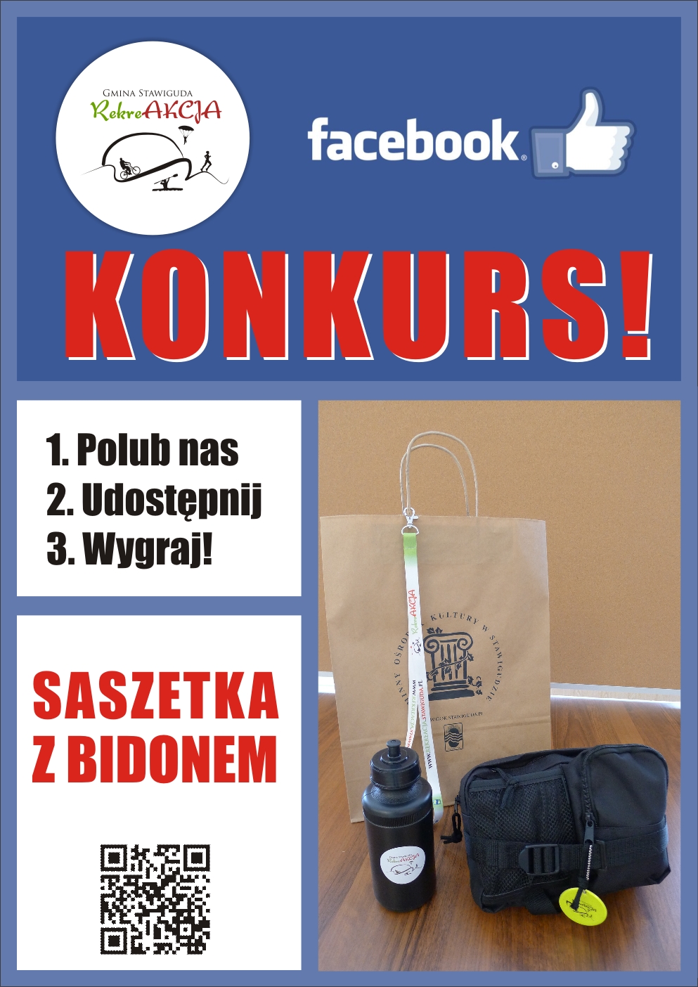 KONKURS Facebookowy RekreAKCJI! Do wygrania funkcjonalna SASZETKA z BIDONEM Wystarczy, że wykonasz 3 kroki, a z listy osób, które je wykonają rozlosujemy nagrodę - FUNKCJONALNĄ SASZETKĘ Z BIDONEM, doskonałą podczas aktywnego wypoczynku!