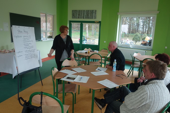 Wychodząc naprzeciw potrzebom klientów Gminnego Ośrodka Pomocy Społecznej w dniu 24 kwietnia br. w "Przystani Kreatywności" przy Publicznym Gimnazjum w Stawigudzie odbyło się pierwsze z serii spotkań mające na celu aktywizację zawodową osób długotrwale bezrobotnych korzystających ze świadczeń pomocy społecznej.