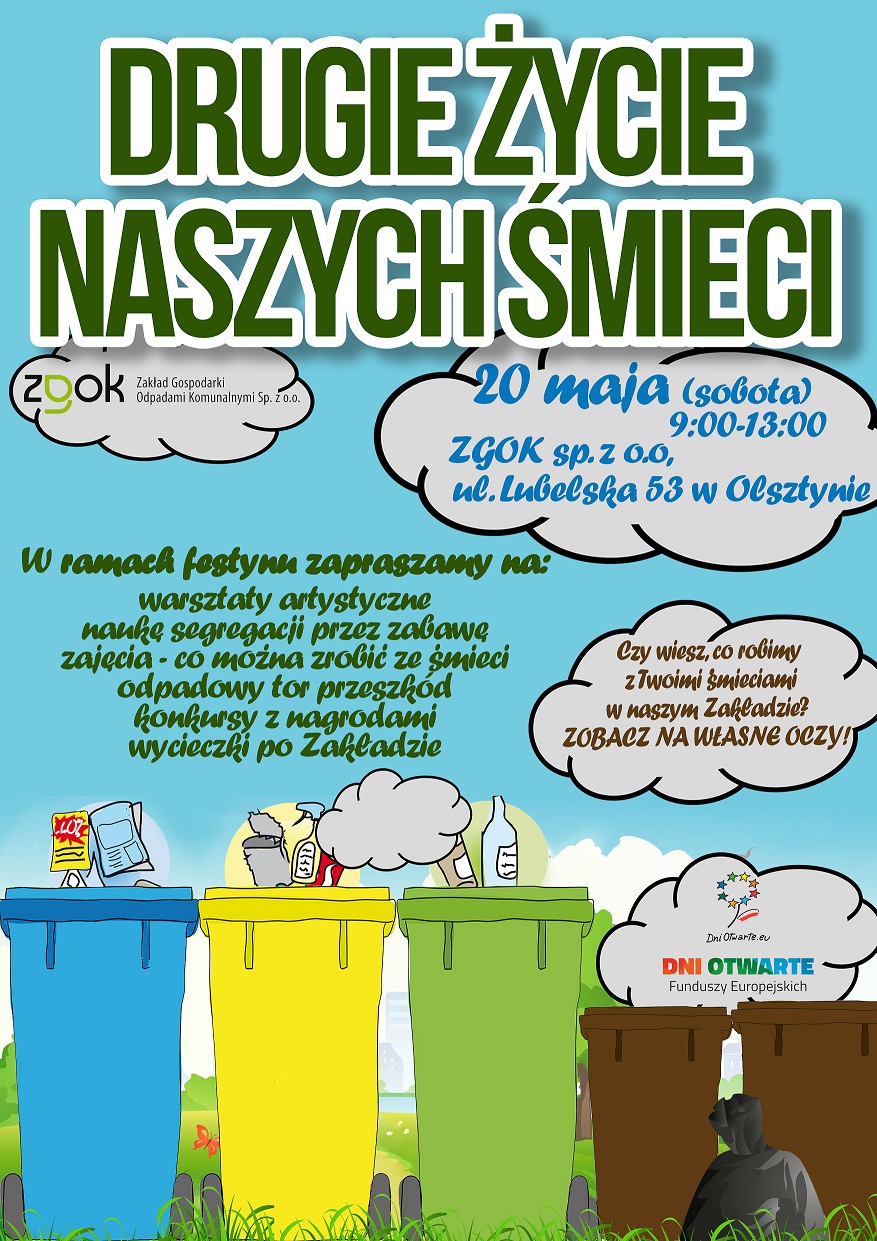 Wójt Gminy Stawiguda informuje, że w ramach Dnia Otwartego Funduszy Europejskich mieszkańcy gminy Stawiguda, którzy chcieliby się dowiedzieć m.in. gdzie trafiają ich odpady i w jaki sposób są zagospodarowywane, w dniu 20 maja br. w godzinach 9.00 – 13.00 mogą wziąć udział w festynie zorganizowanym przez Zakład Gospodarki Odpadami Komunalnymi w Olsztynie przy ul. Lubelskiej 53.