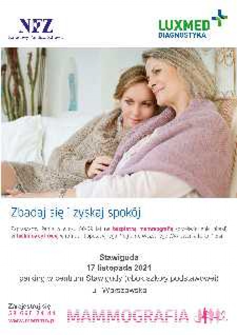 Bezpłatne badania mammograficzne - 17.11.2021 r. w Stawigudzie