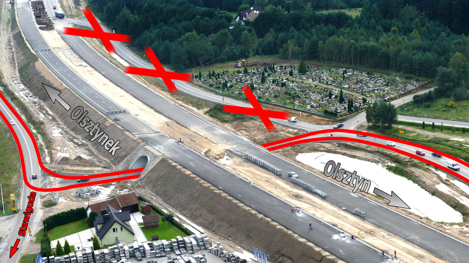 Urząd Gminy Stawiguda informuje, że Wykonawca budowy drogi ekspresowej S51 firma Energopol-Szczecin s.a. planuje wprowadzić nową organizację ruchu w miejscowości Stawiguda. Wyjazd od strony Olsztynka będzie odbywał się przejazdem na wysokości ul. Jarzębinowej (zjazd do miejscowości Wymój) - zgodnie z załączonym schematem. Wprowadzenie nowej organizacji zaplanowane zostało na dzień 21.09.2017 r. (czwartek) na godz. 12.30.