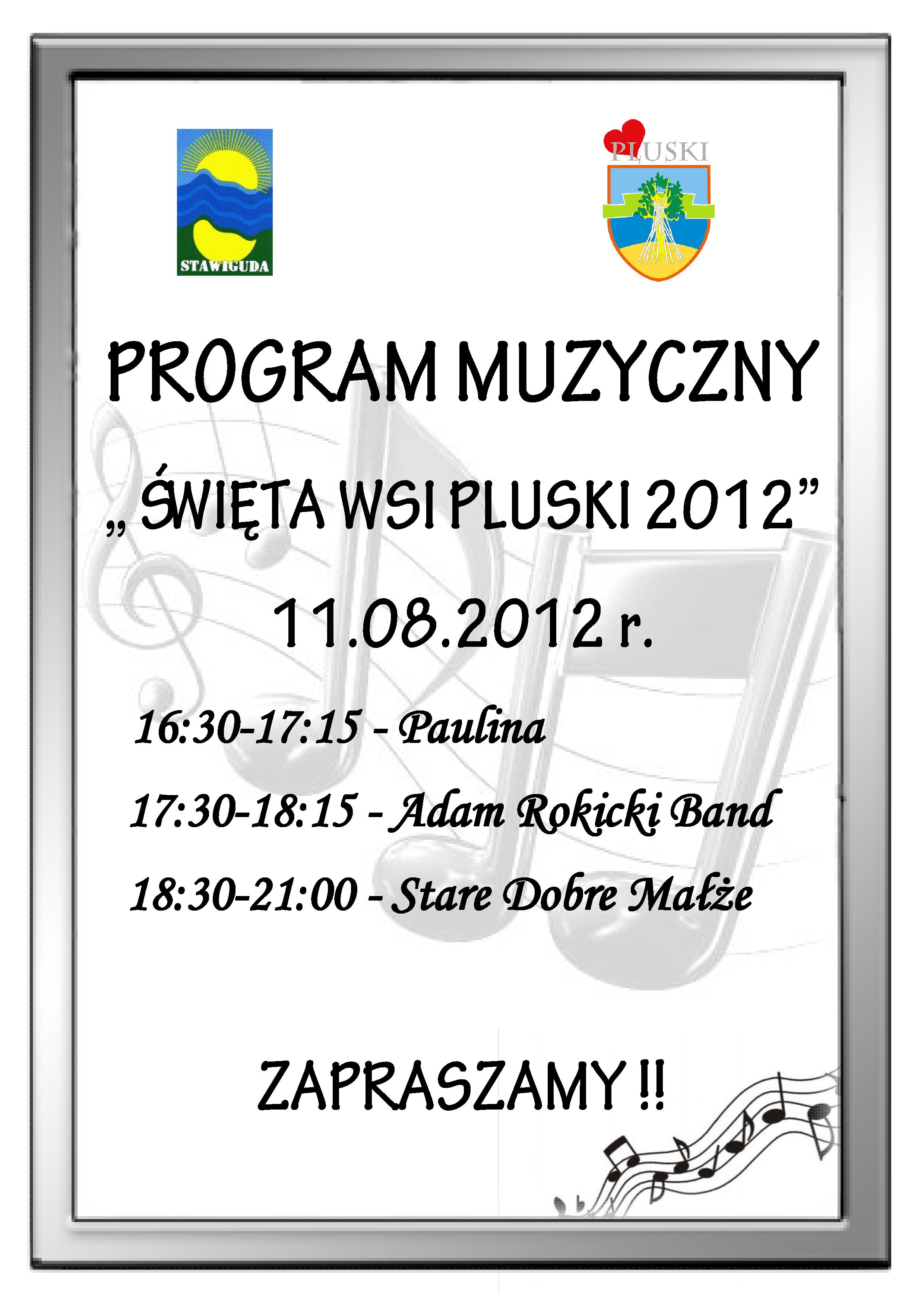 Rada Sołecka Sołectwa Pluski-Rybaki, Stowarzyszenie Miłośników Plusk i Wójt Gminy Stawiguda zapraszają gości i mieszkańców na Święto Wsi Pluski w sobotę 11 sierpnia 2012r.