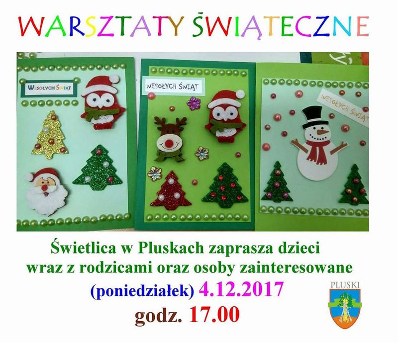 Świetlica w Pluskach zaprasza dzieci wraz z rodzicami oraz osoby zainteresowane (poniedziałek) 4.12.2017 godz. 17:00