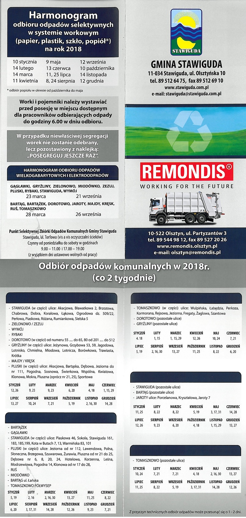 Harmonogram odpadów selektywnych w systemie workowym (papier, plastik, szkło, popiół) na rok 2018