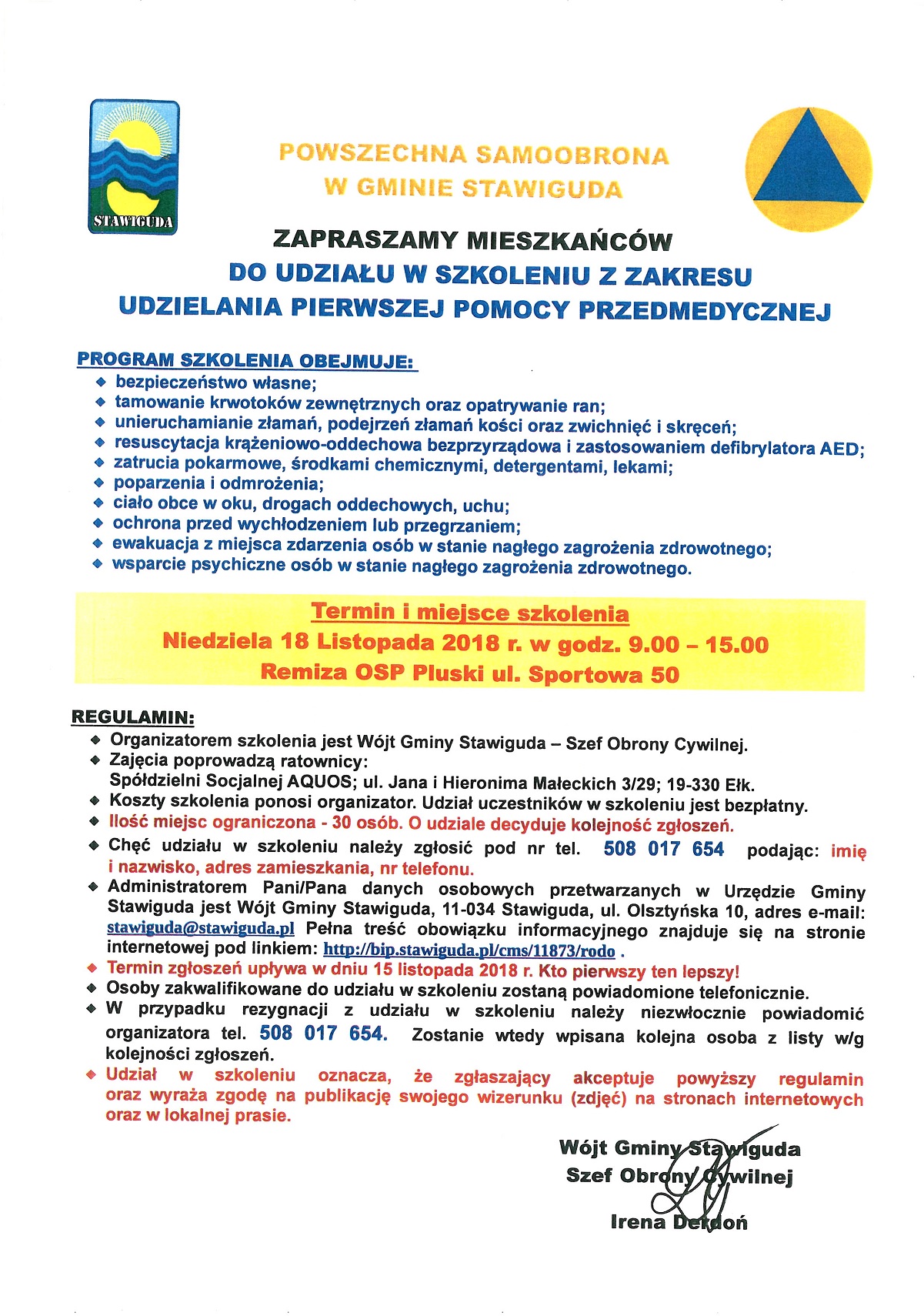 Powszechna Samoobrona w gminie Stawiguda. Zapraszamy mieszkańców do udziału w szkoleniu z zakresu udzielania pierwszej pomocy przedmedycznej