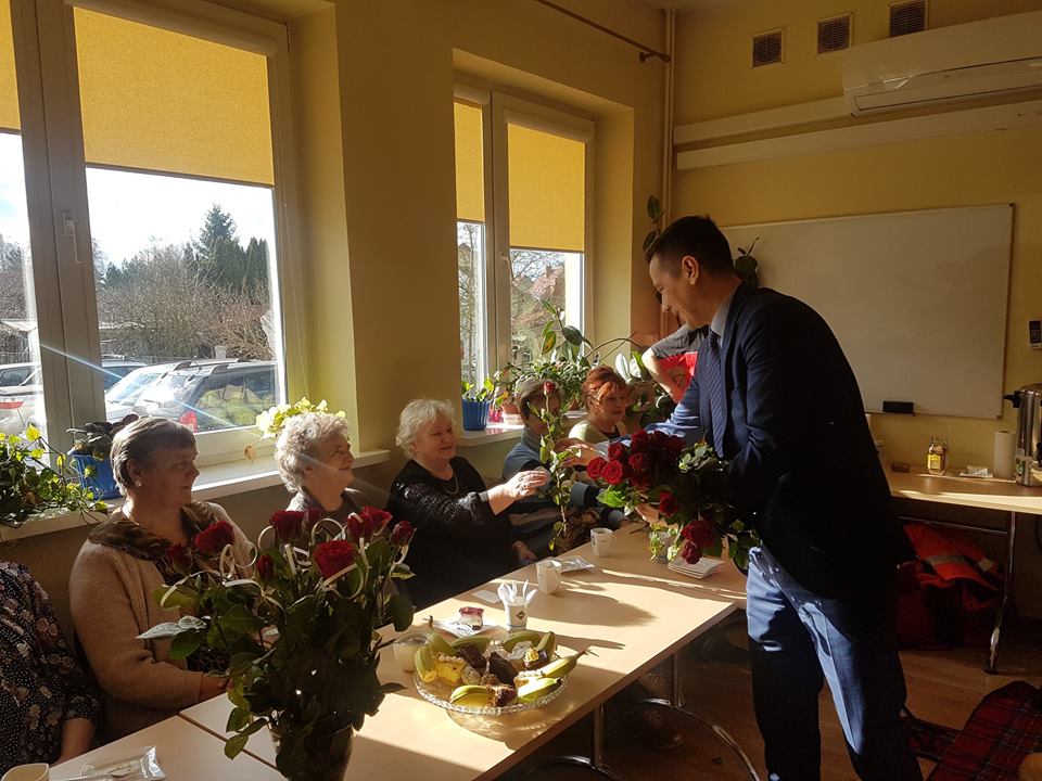 Wójt Gminy Stawiguda podczas zorganizowanego spotkania złożył serdeczne życzenia z okazji Dnia Kobiet wręczając róże wszystkim uczestniczącym Paniom.