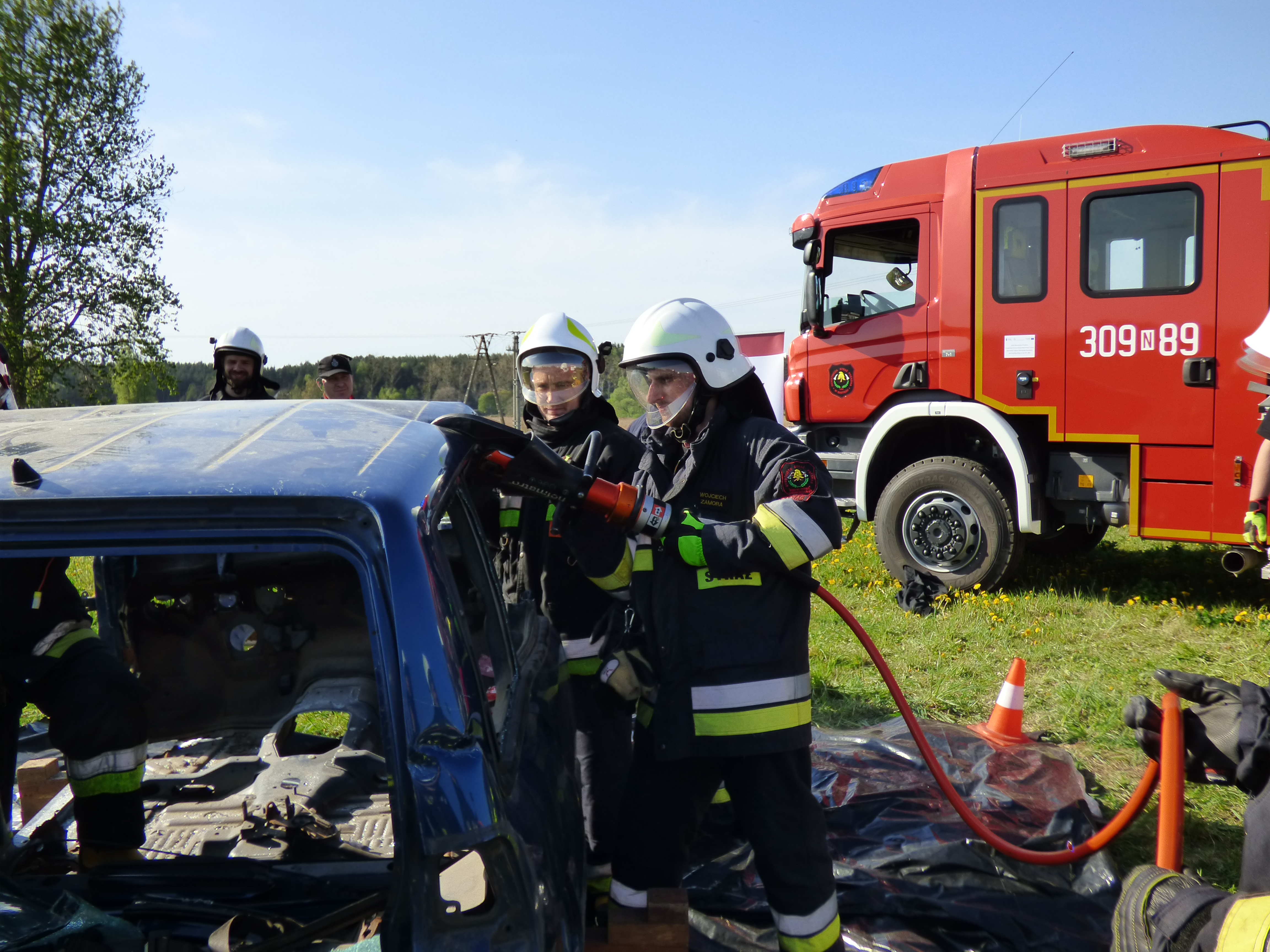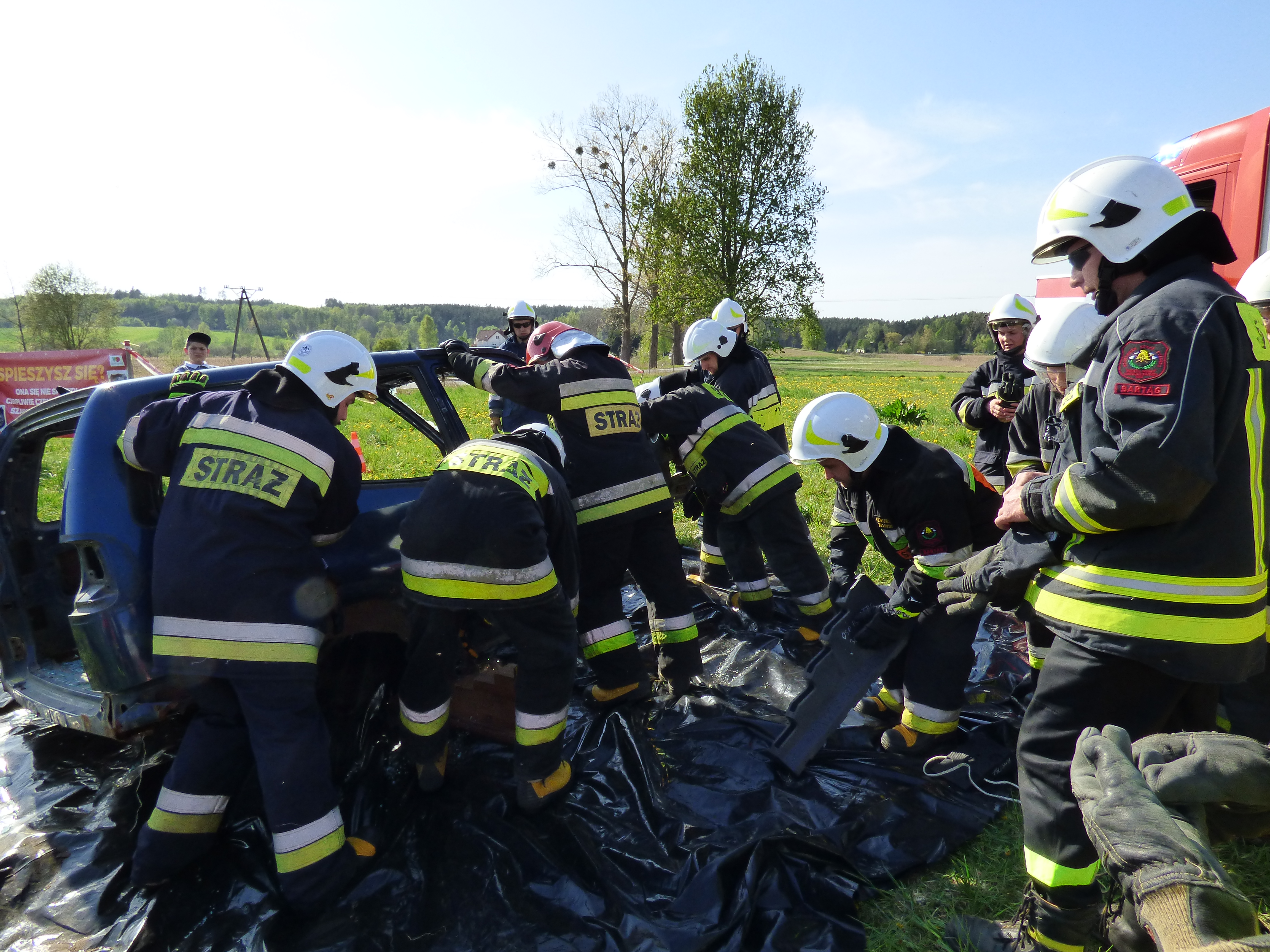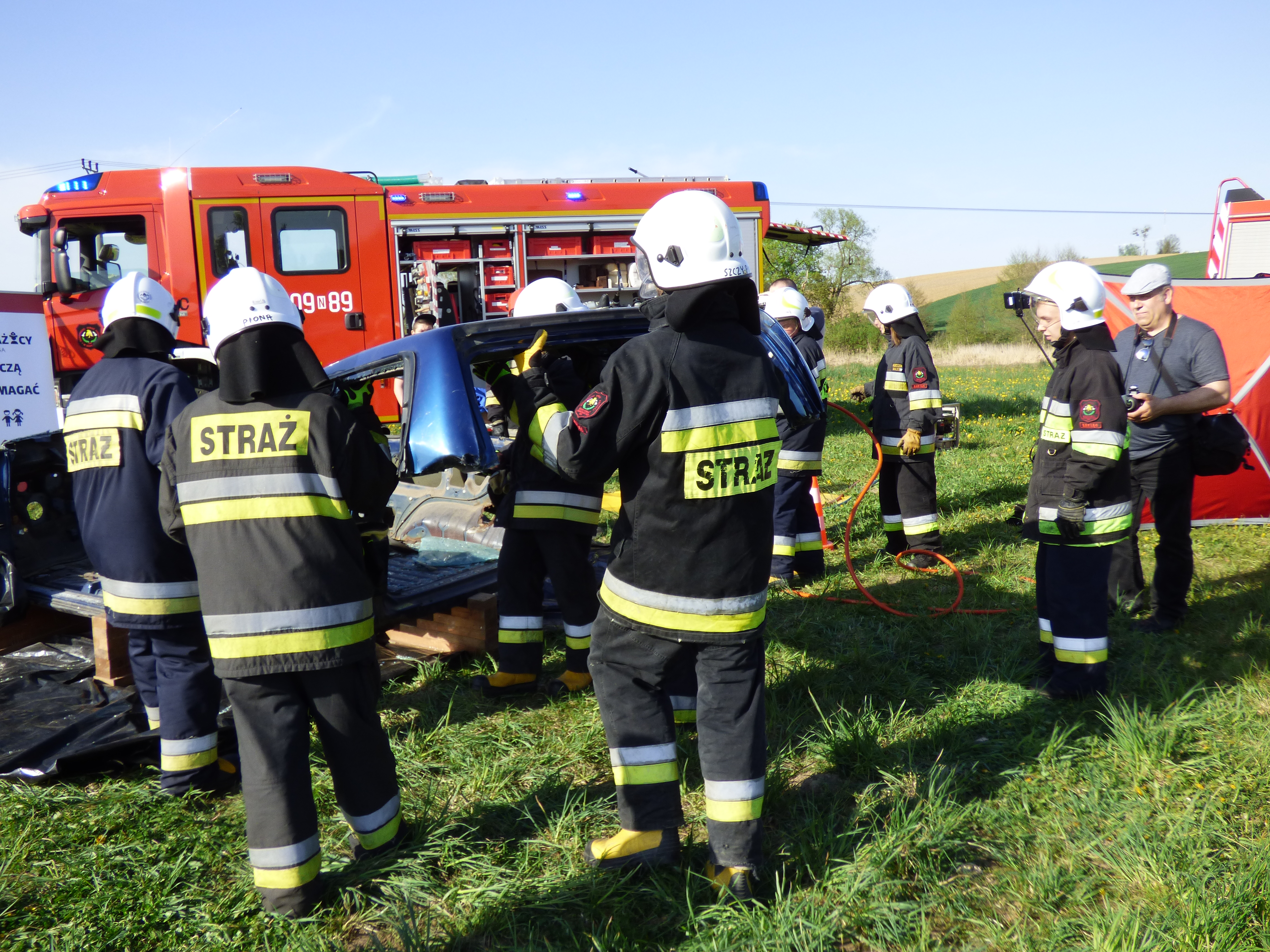 Podczas symulowanego wypadku ćwiczono zasady uwalniania poszkodowanych z rozbitego pojazdu oraz zasady udzielania pierwszej pomocy przedmedycznej.