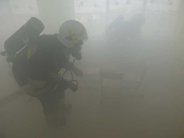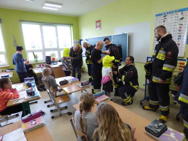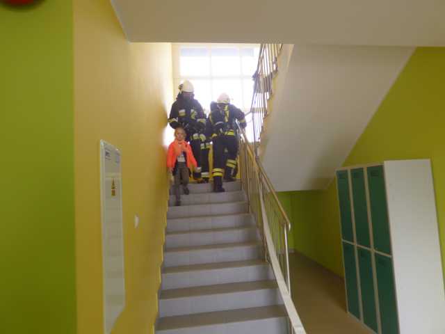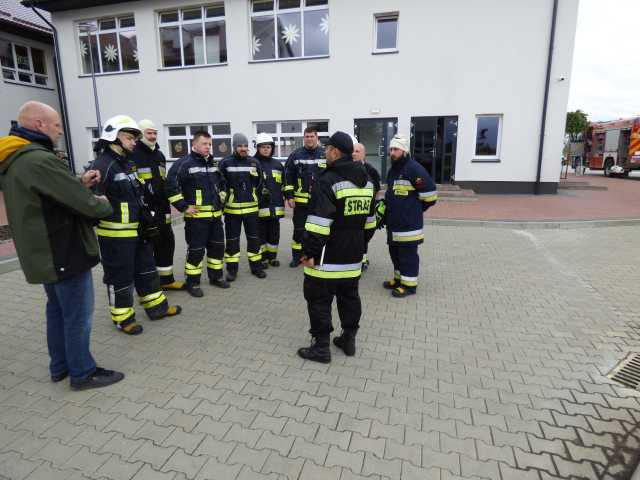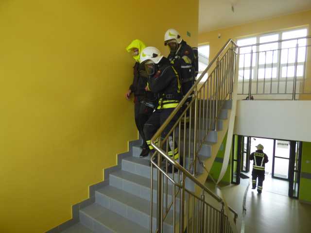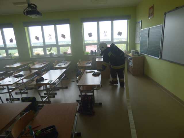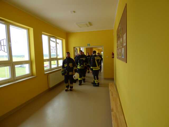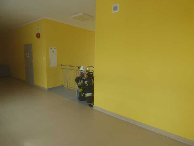Po omówieniu prowadzonych działań strażacy zapoznali się z obiektem szkoły. Podczas ćwiczenia do ewakuacji osób z zadymionych pomieszczeń wykorzystano kaptury ewakuacyjne. W ćwiczeniu uczestniczyli funkcjonariusz PSP i pracownik merytoryczny Urządu Gminy ds. Zarządzania Kryzysowego.