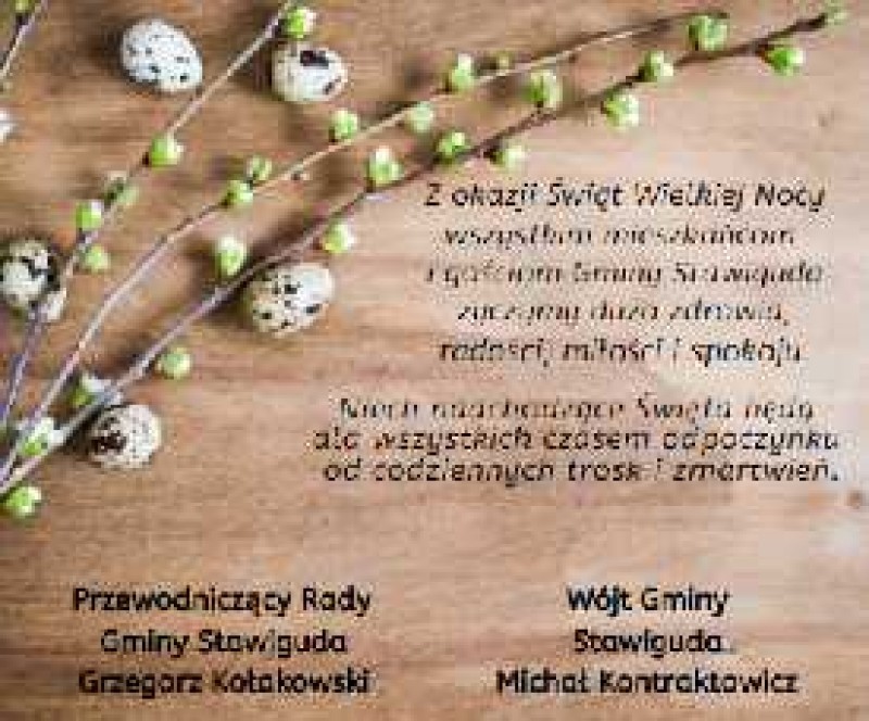 Życzenia Wielkanocne 2020 od Wójta Gminy Stawiguda