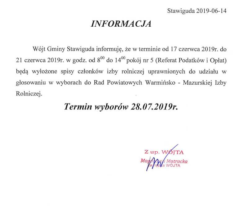 Informacja - wybory do Rad Powiatu Warmińsko-Mazurskiej Izby Rolniczej