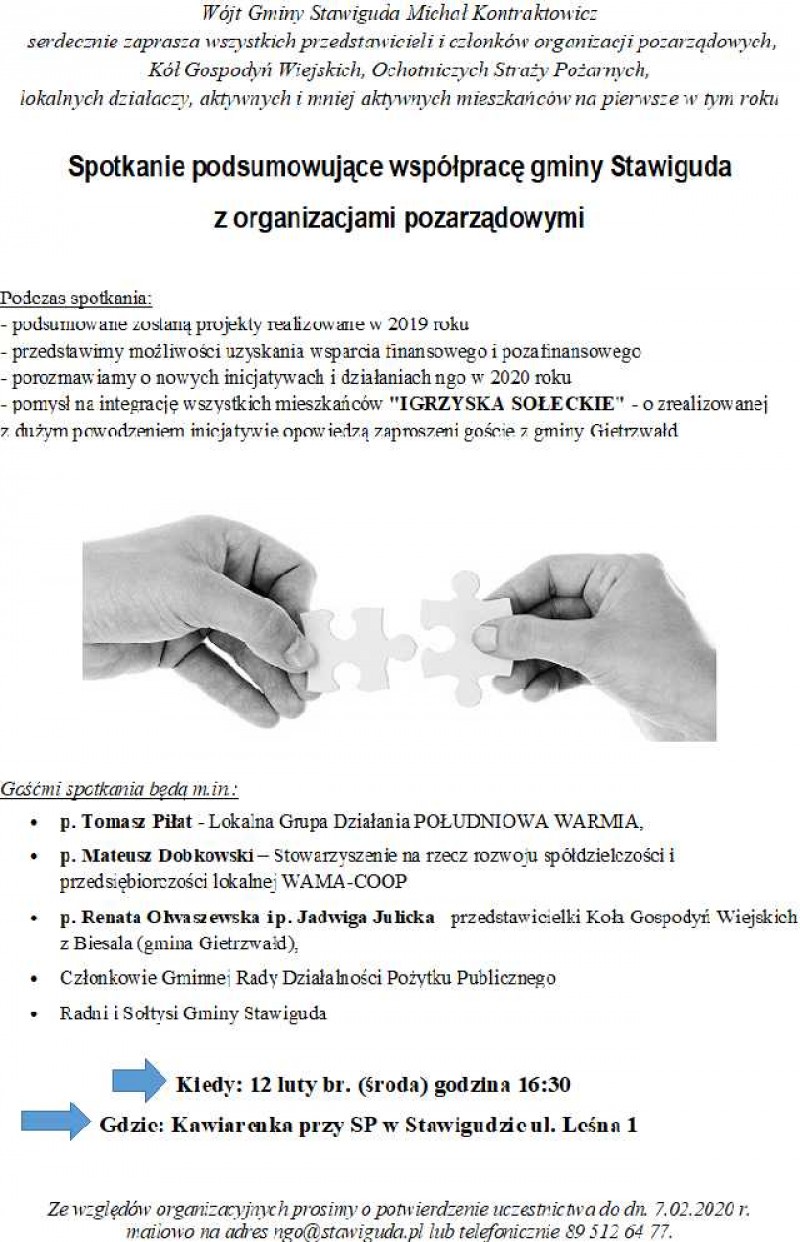 Serdecznie zapraszamy do współpracy wszystkie Organizacje Pozarządowe funkcjonujące na terenie Gminy Stawiguda.