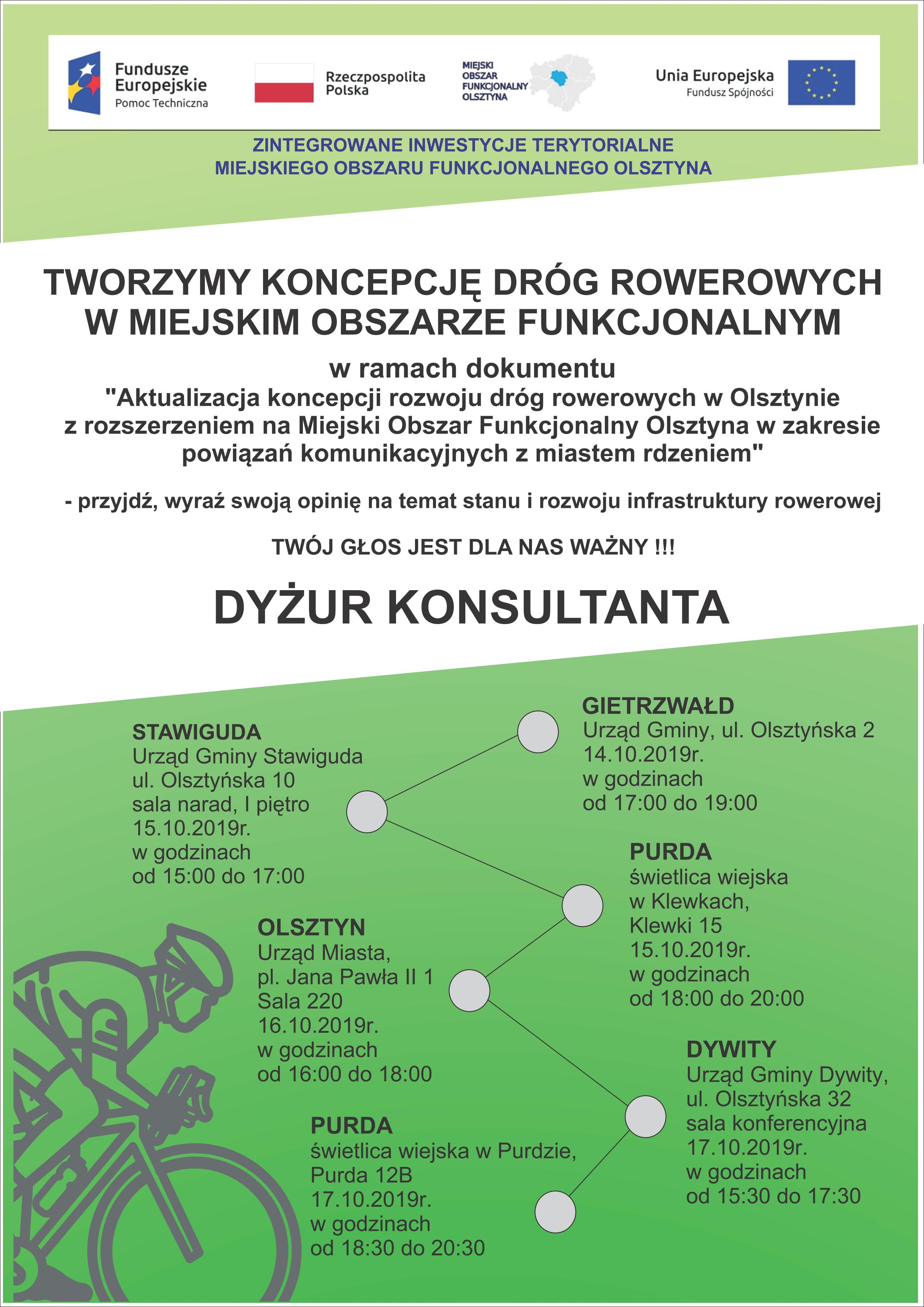Terminy konsultacji na temat komunikacji rowerowej w Gminie Stawiguda