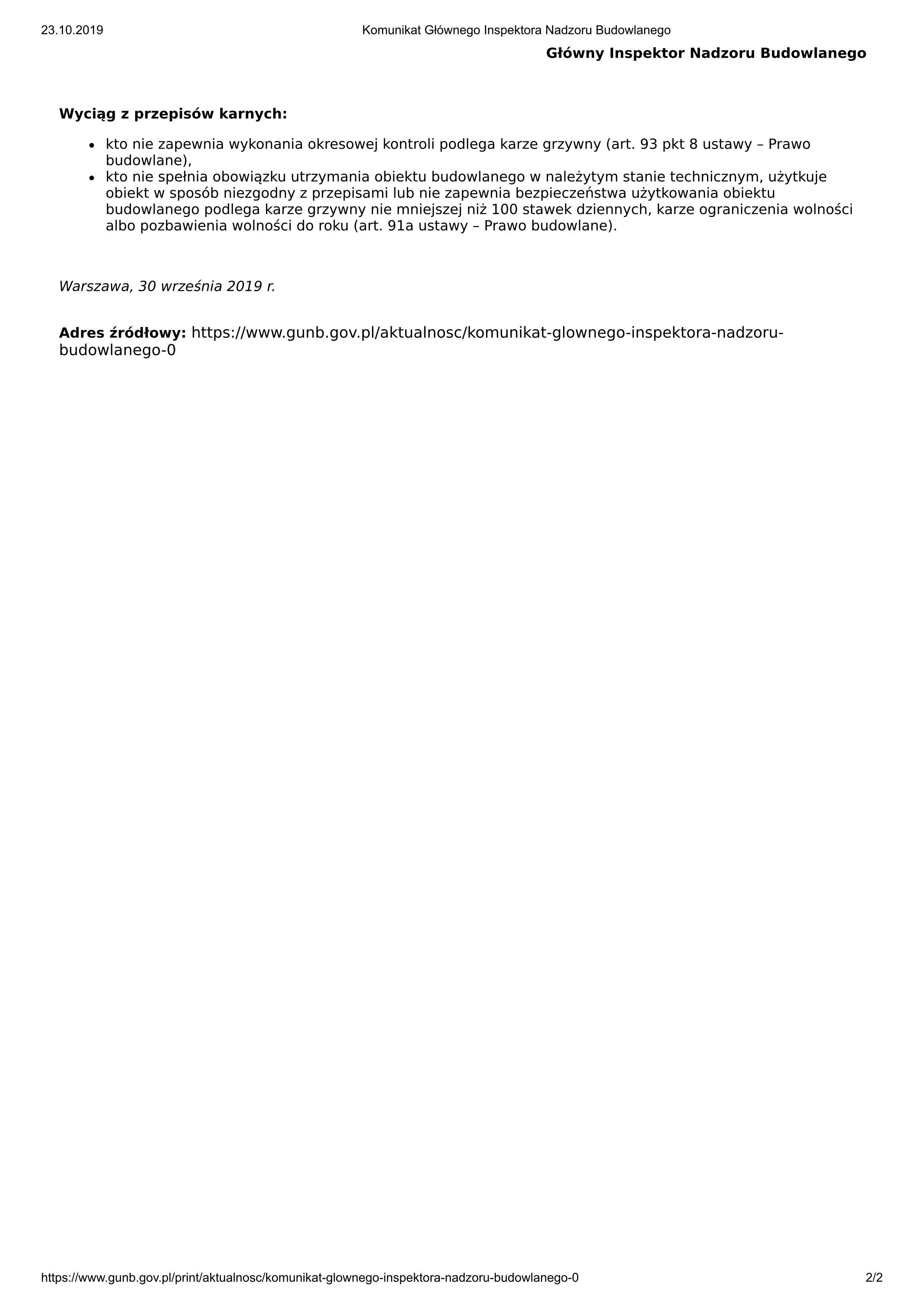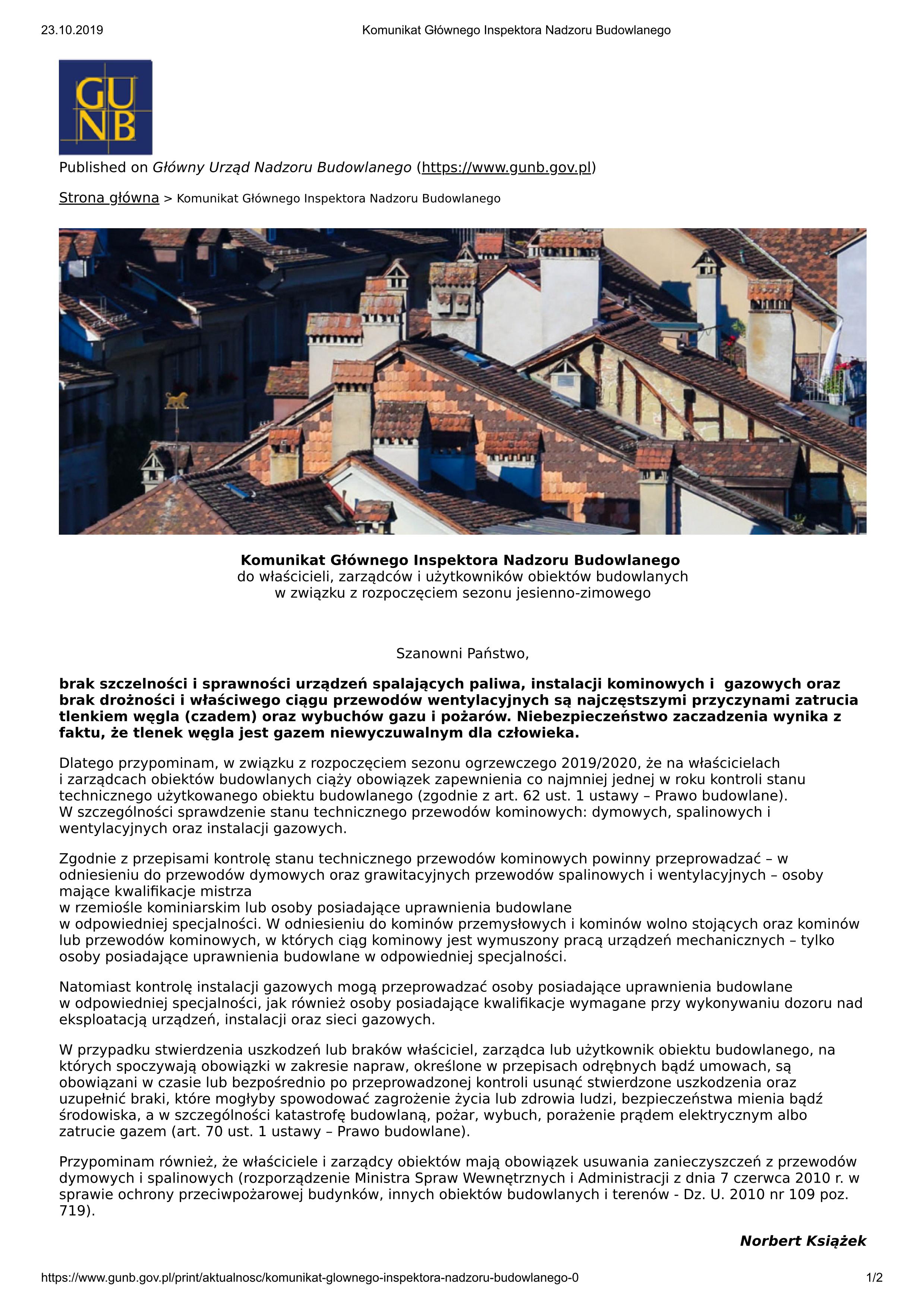 Komunikat Głównego Inspektora Nadzoru Budowlanego
