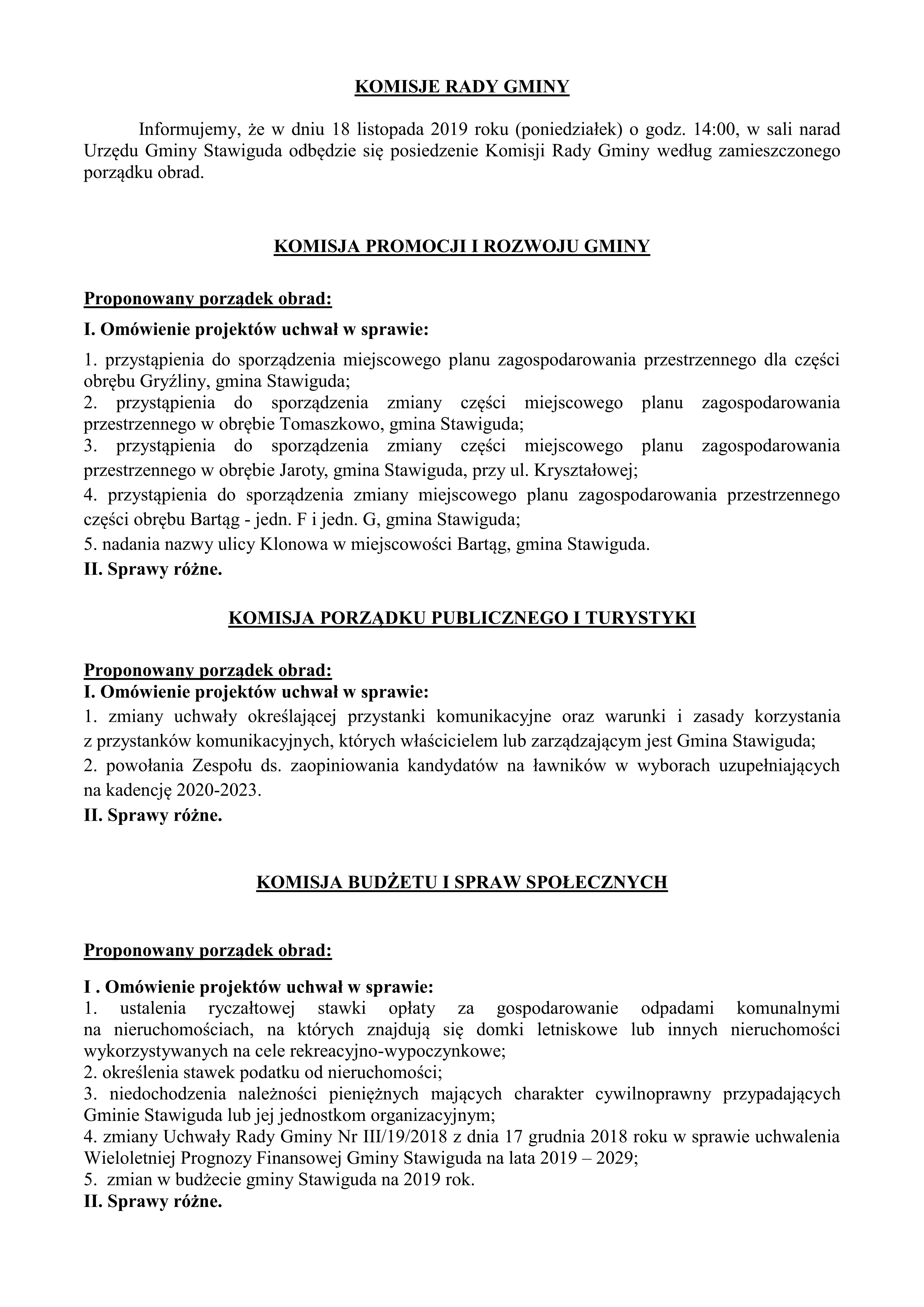 KOMISJE RADY GMINY 18.11.2019 r.
