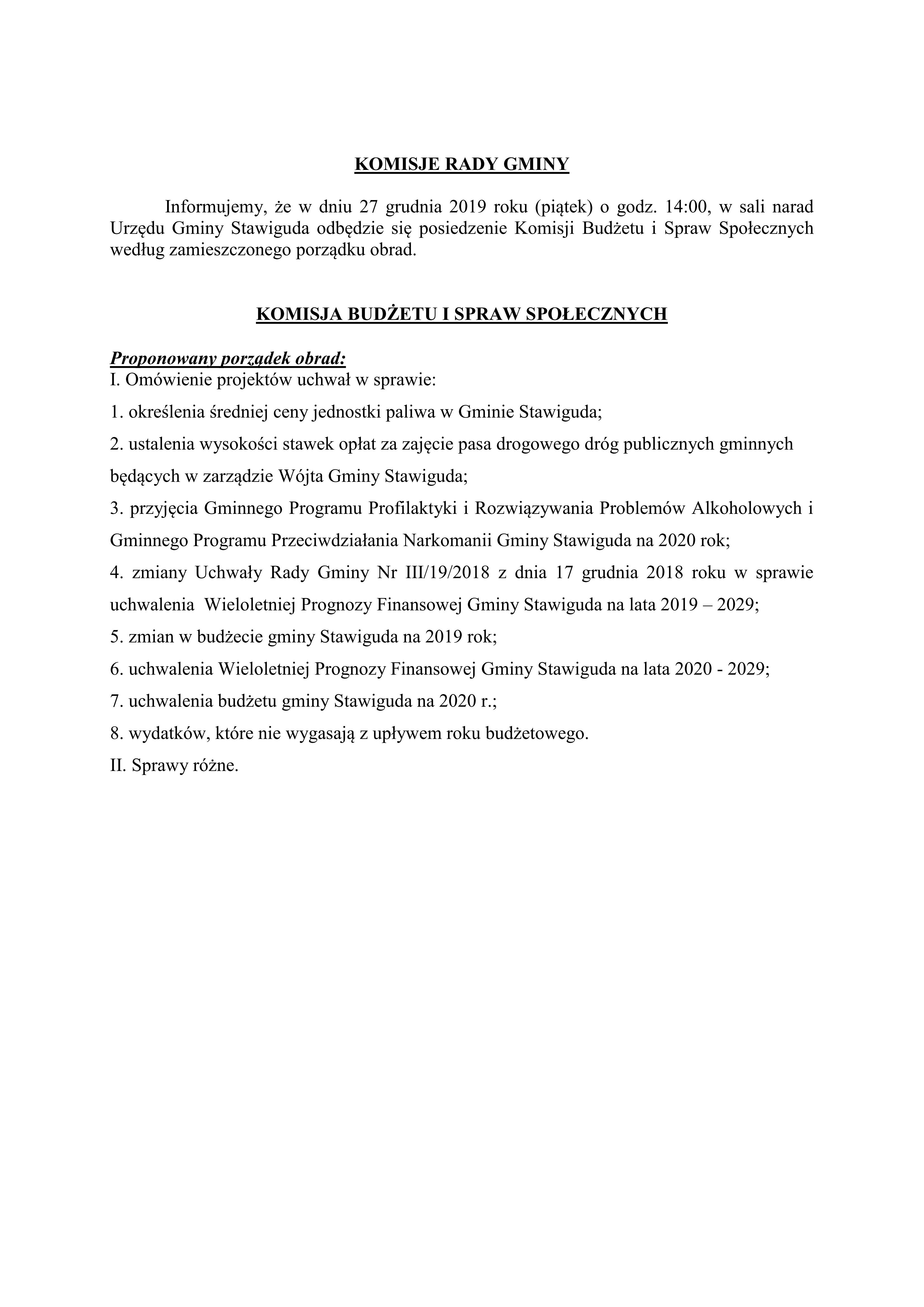 KOMISJE RADY GMINY 27.12.2019 r.