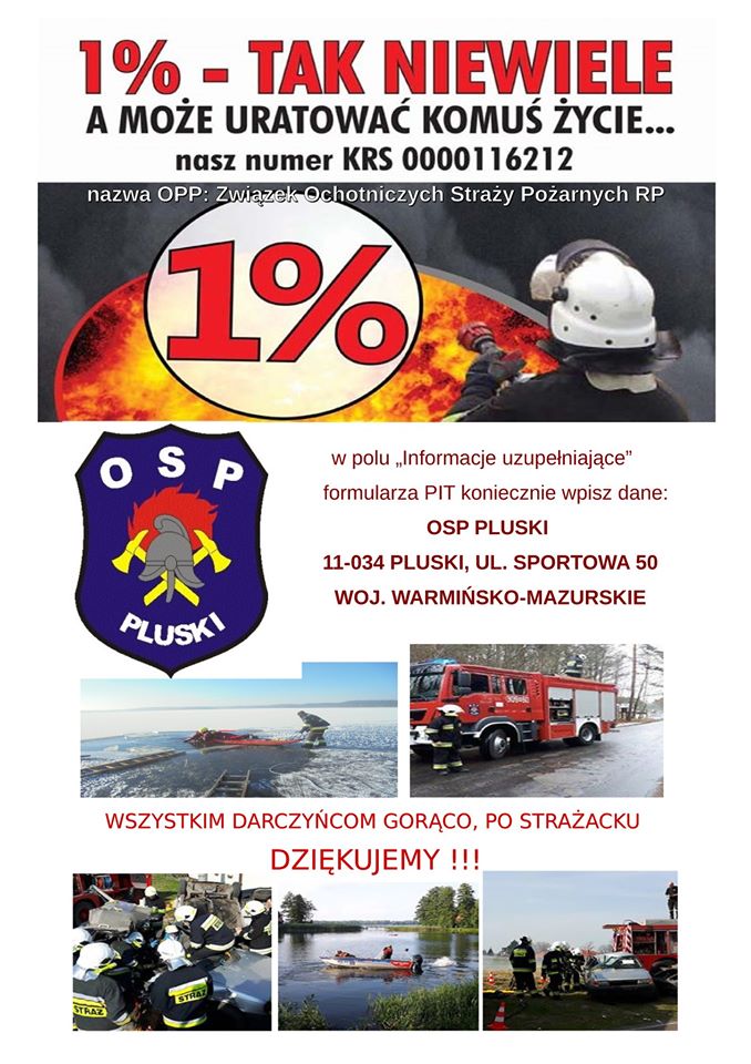 1% Podatku - Ochotnicza Straż Pożarna w Pluskach