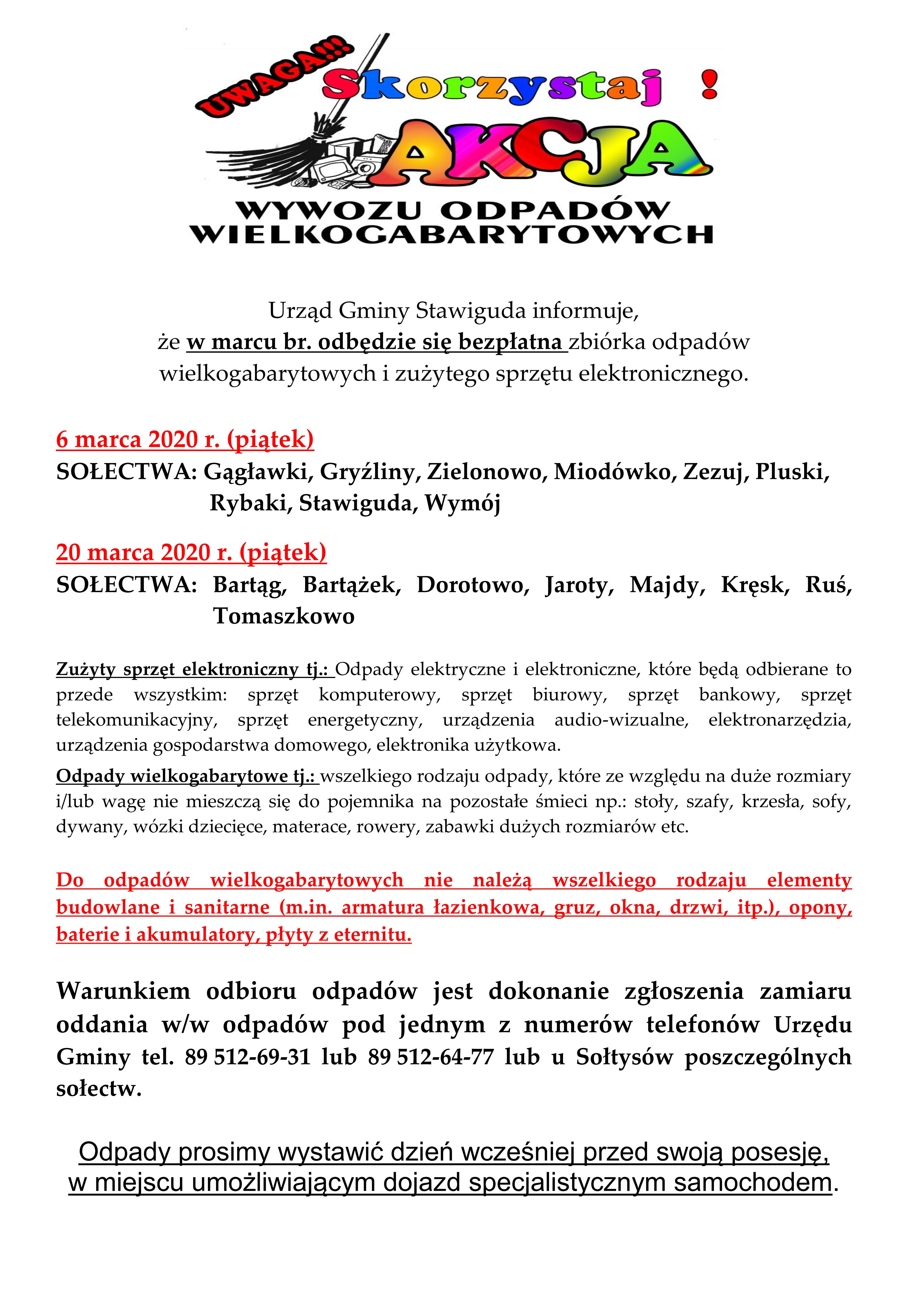 Zbiórka odpadów wielkogabarytowych i zużytego sprzętu elektronicznego