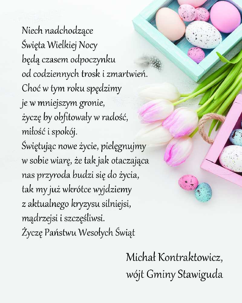 Życzenia Wielkanocne 2020 od Wójta Gminy Stawiguda