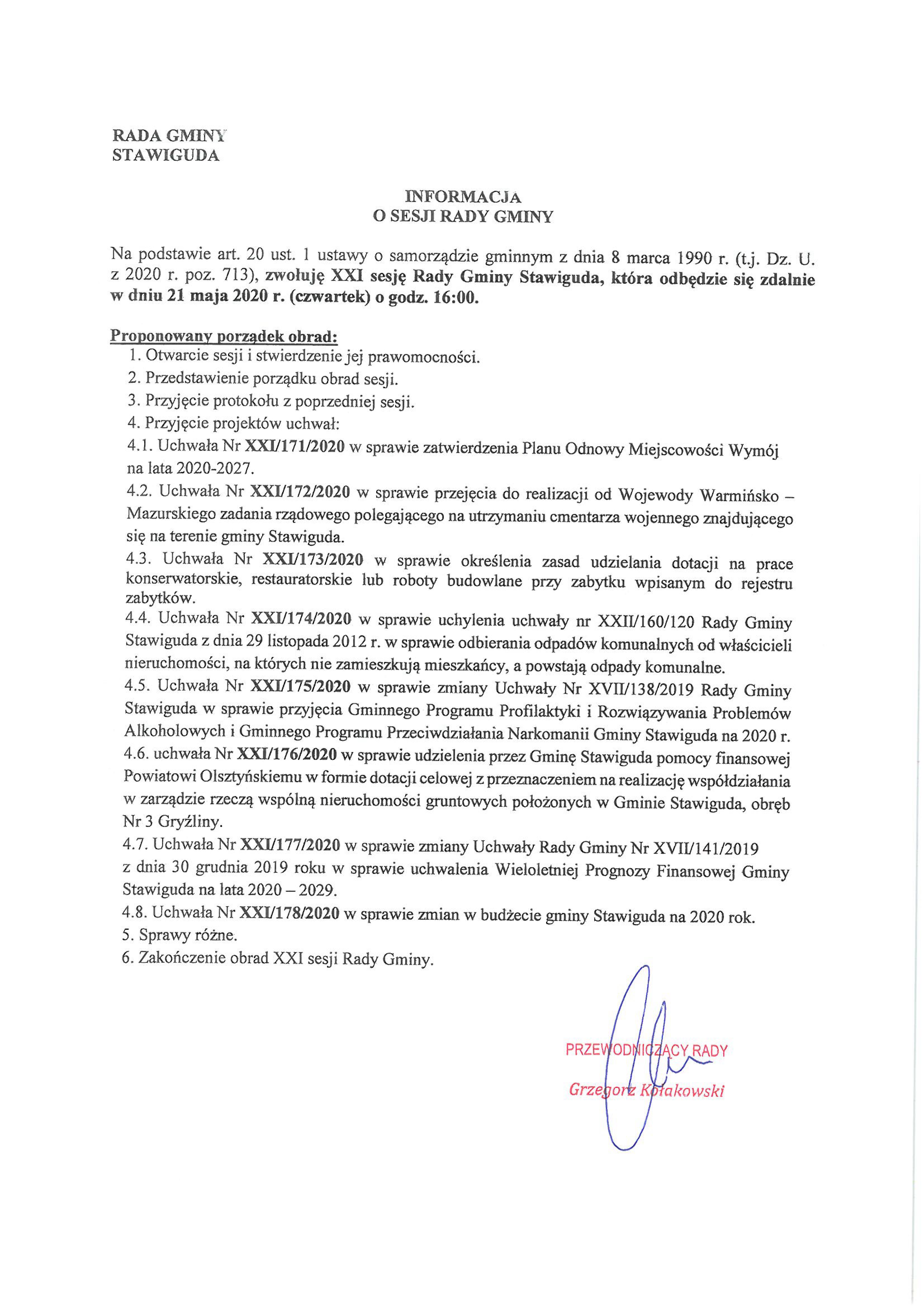 Sesja Rady Gminy - 21.05.2020 r.