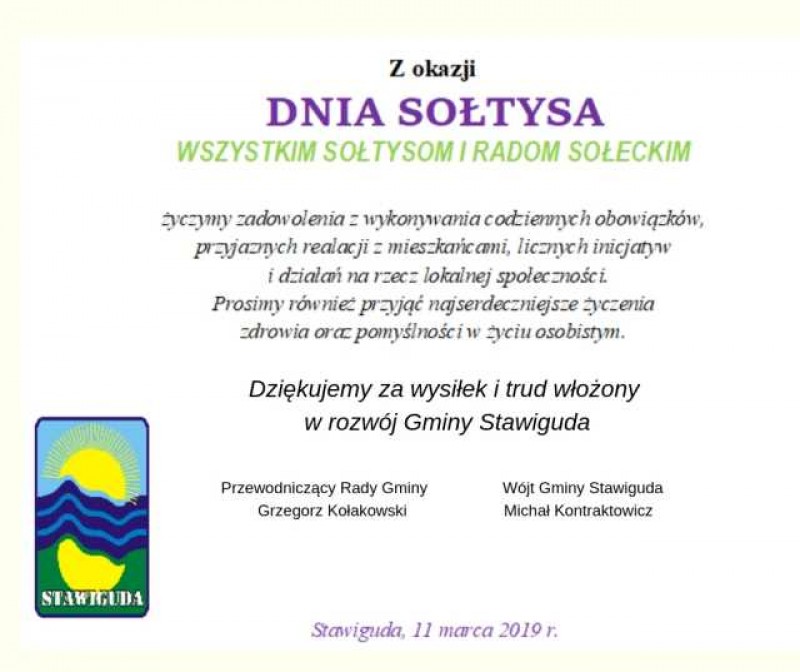 Na podstawie art. 13 ust. 1 i 2 Rozporządzenia Parlamentu Europejskiego i Rady (UE) 2016/679  z  dnia  27  kwietnia  2016  r.  w  sprawie  ochrony  osób  fizycznych  w  związku  z przetwarzaniem  danych osobowych  i  w  sprawie  swobodnego  przepływu  takich  danych zwanego „RODO”, Urząd Gminy w Stawigudzie informuje o zasadach przetwarzania danych osobowych oraz o przysługujących prawach z tym związanych: