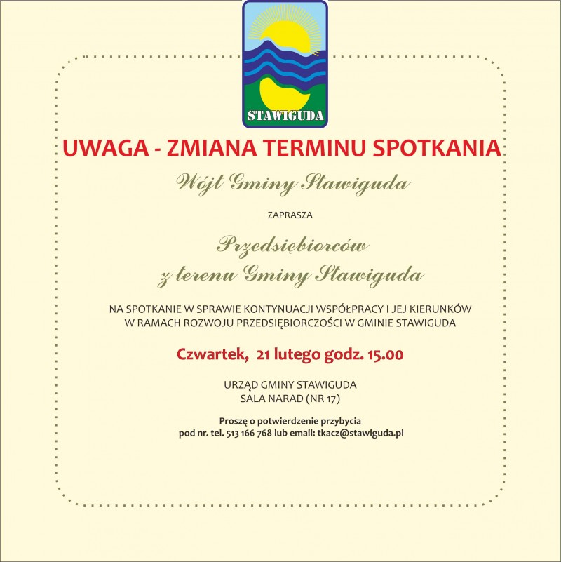 Wójt Gminy Stawiguda, zaprasza Przedsiębiorców z terenu Gminy Stawiguda