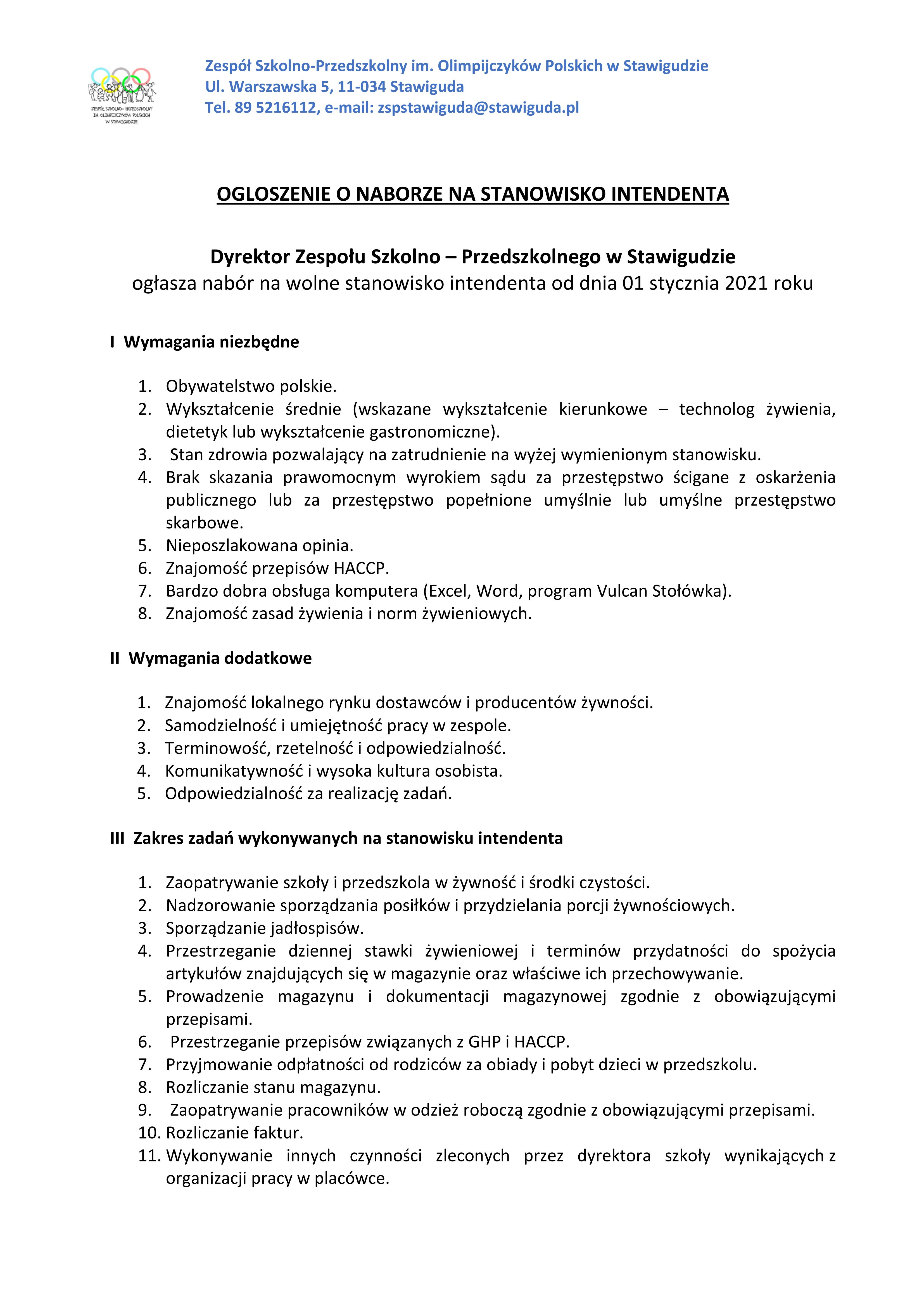 Ogłoszenie o naborze na stanowisko Intendenta