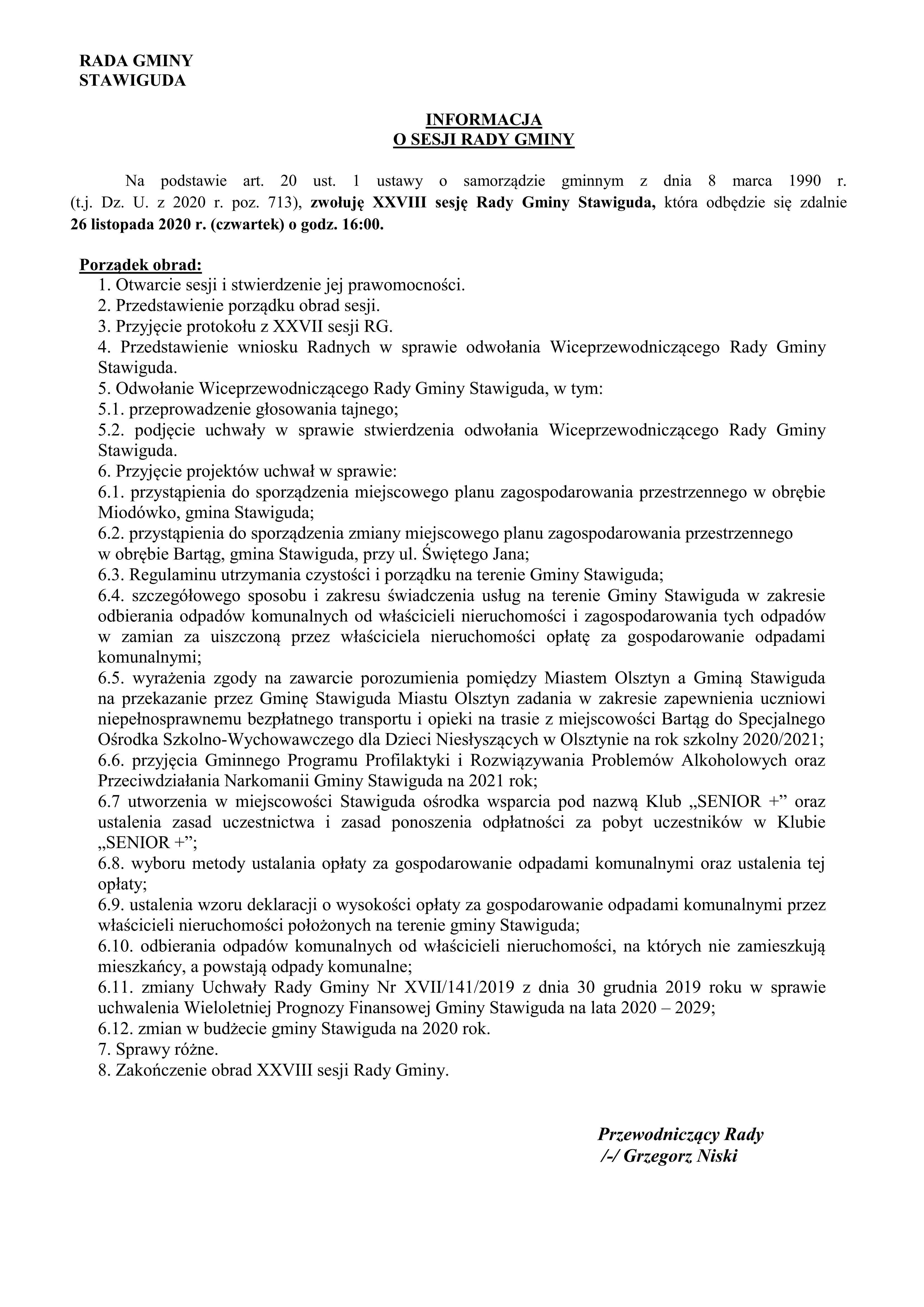INFORMACJA O SESJI RADY GMINY