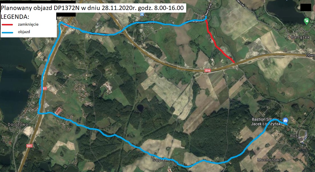 Zamknięcie drogi na odcinku Ruś - Bartąg w dniu 28.11.2020 r. (sobota)
