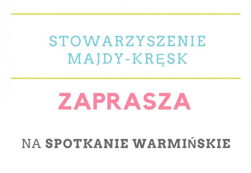 Stowarzyszenie "Zrzeszenie Majdy-Kręsk" serdecznie zaprasza na SPOTKANIE WARMIŃSKIE, które odbędzie się 11 listopada o godzinie 15.00 w Majdach. Projekt realizowany jest w ramach projektu Działaj Lokalnie