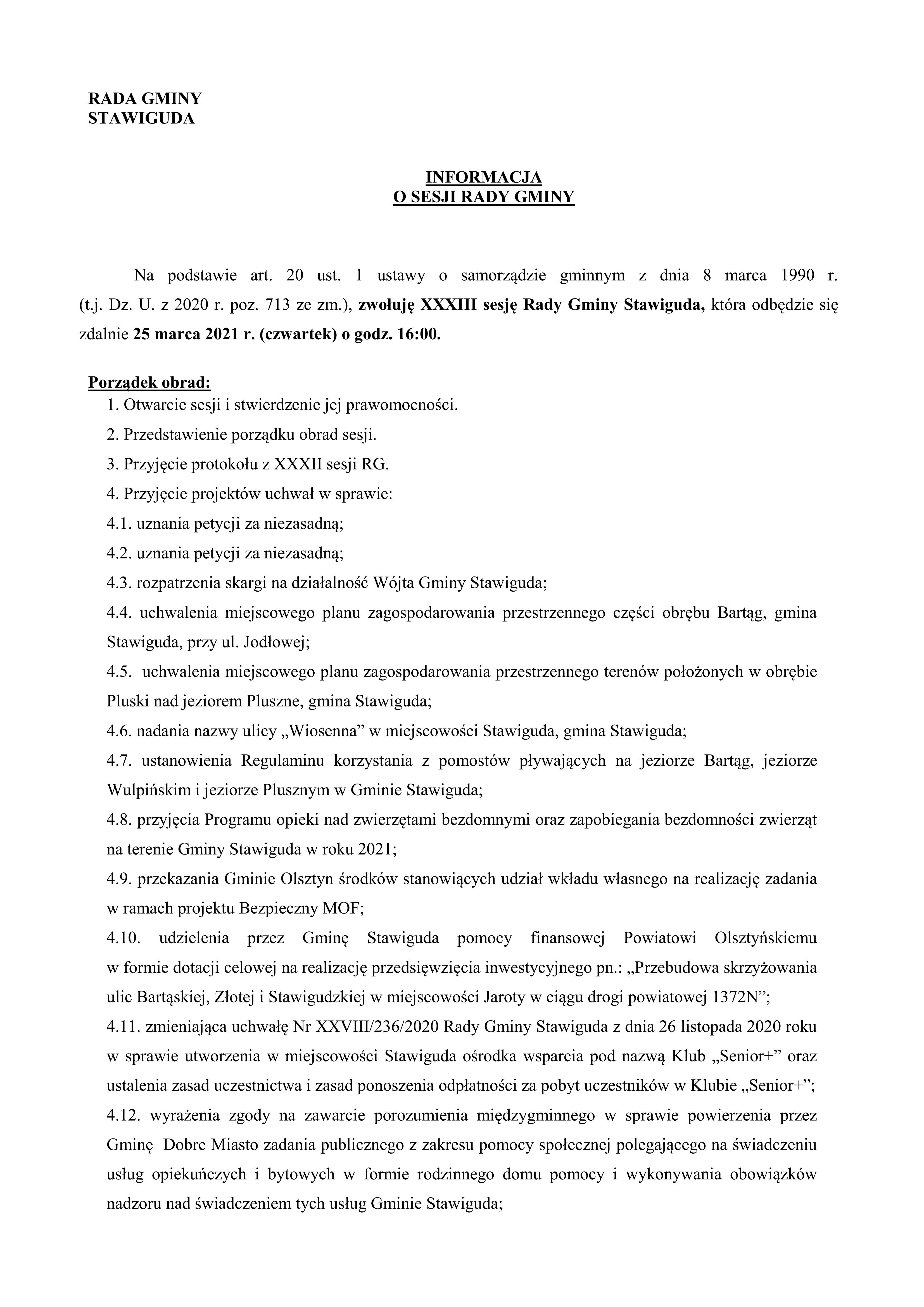 INFORMACJA O SESJI RADY GMINY