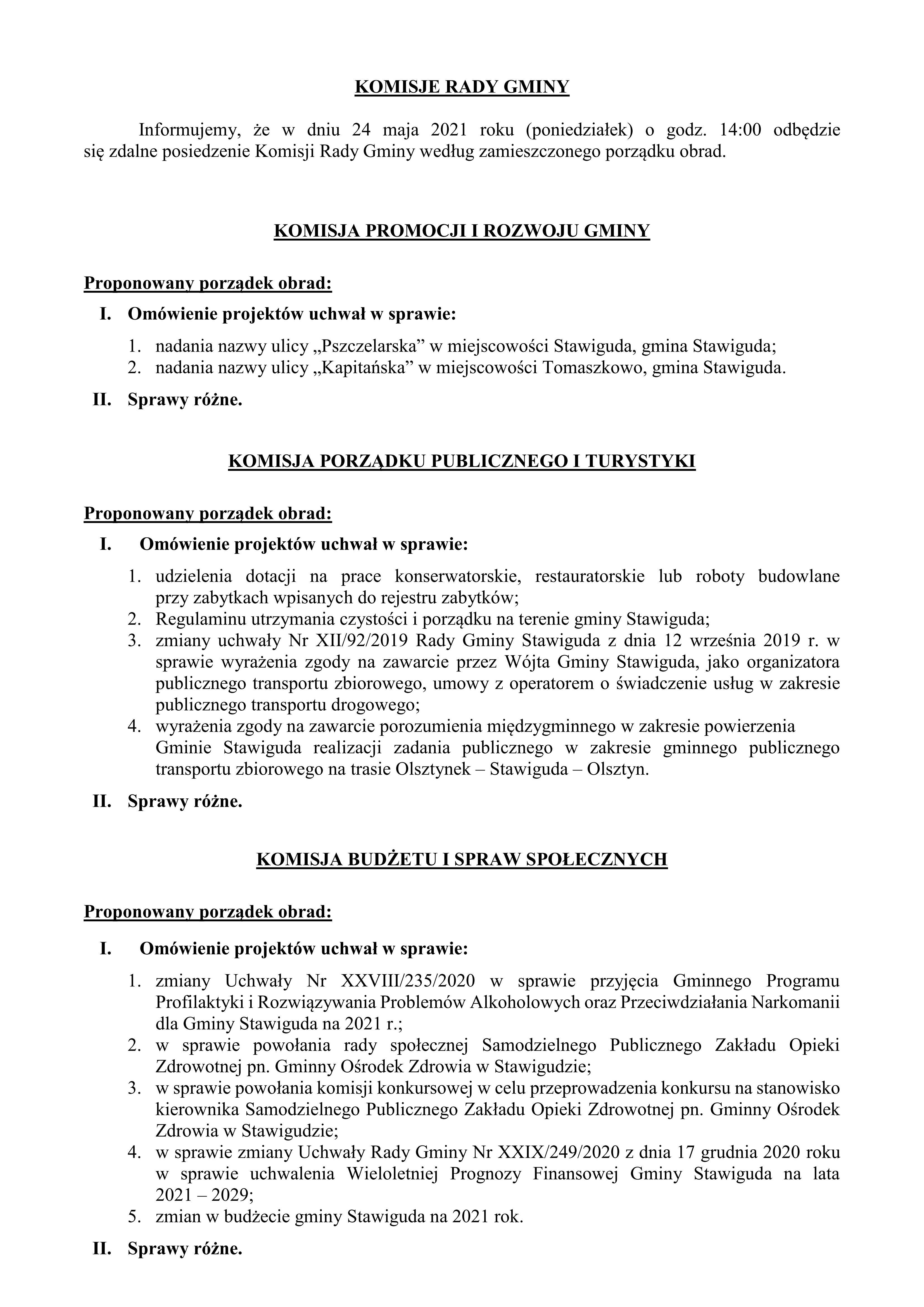KOMISJE RADY GMINY 24.05.2021 r.