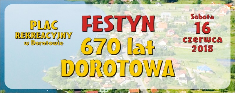 Gmina Stawiguda oraz Rada Sołecka wsi Dorotowo serdecznie zaprasza w sobotę 16 czerwca br. na FESTYN z okazji obchodów 670-lecia Dorotowa.