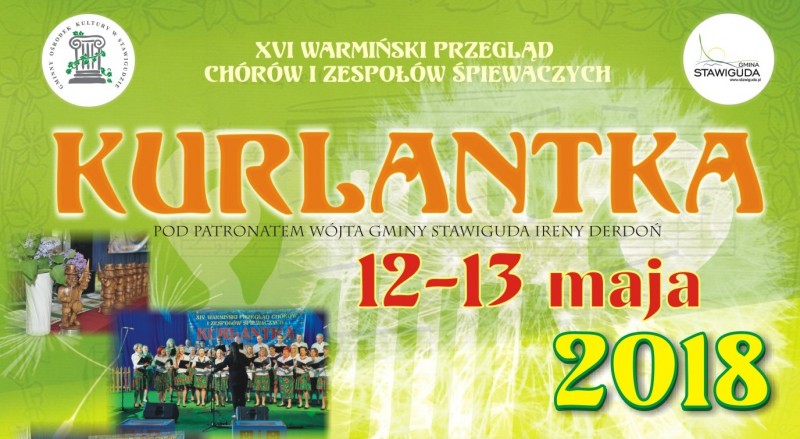 Serdecznie zapraszamy na XVI Warmiński Przegląd Chórów i Zespołów Śpiewaczych "KURLANTKA 2018", który odbędzie się 12 i 13 maja br. w Stawigudzie.