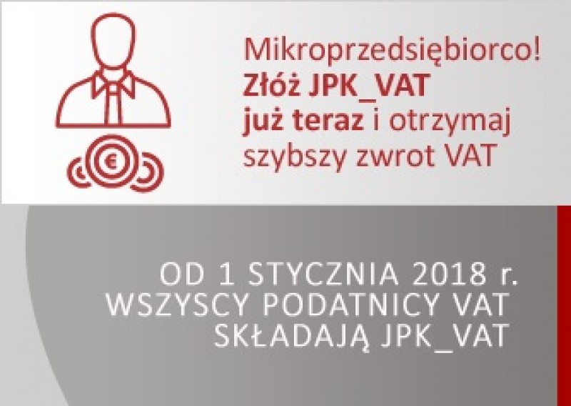 Urząd Skarbowy w Olsztynie zaprasza mikroprzedsiębiorców z gmin, którzy od 1 stycznia 2018 r. będą mieli obowiązek składania JPK w każdy wtorek listopada – 7.11, 14.11, 21.11 i 28.11 na szkolenia w zakresie JPK_VAT, które odbywać się będą w Sali Konferencyjnej nr 1 w budynku Izby Administracji Skarbowej w Olsztynie w godz. 10.00 - 11.00.