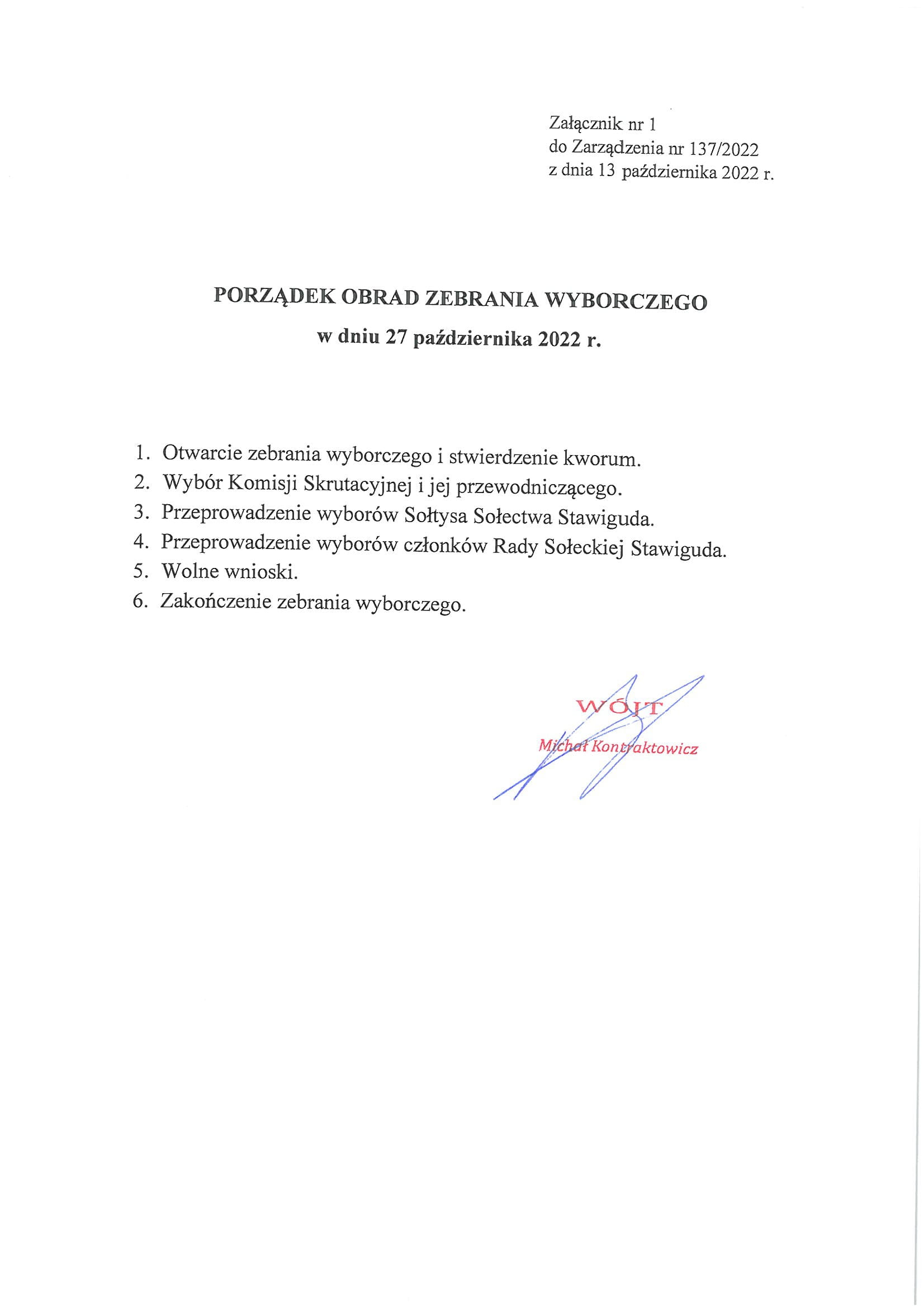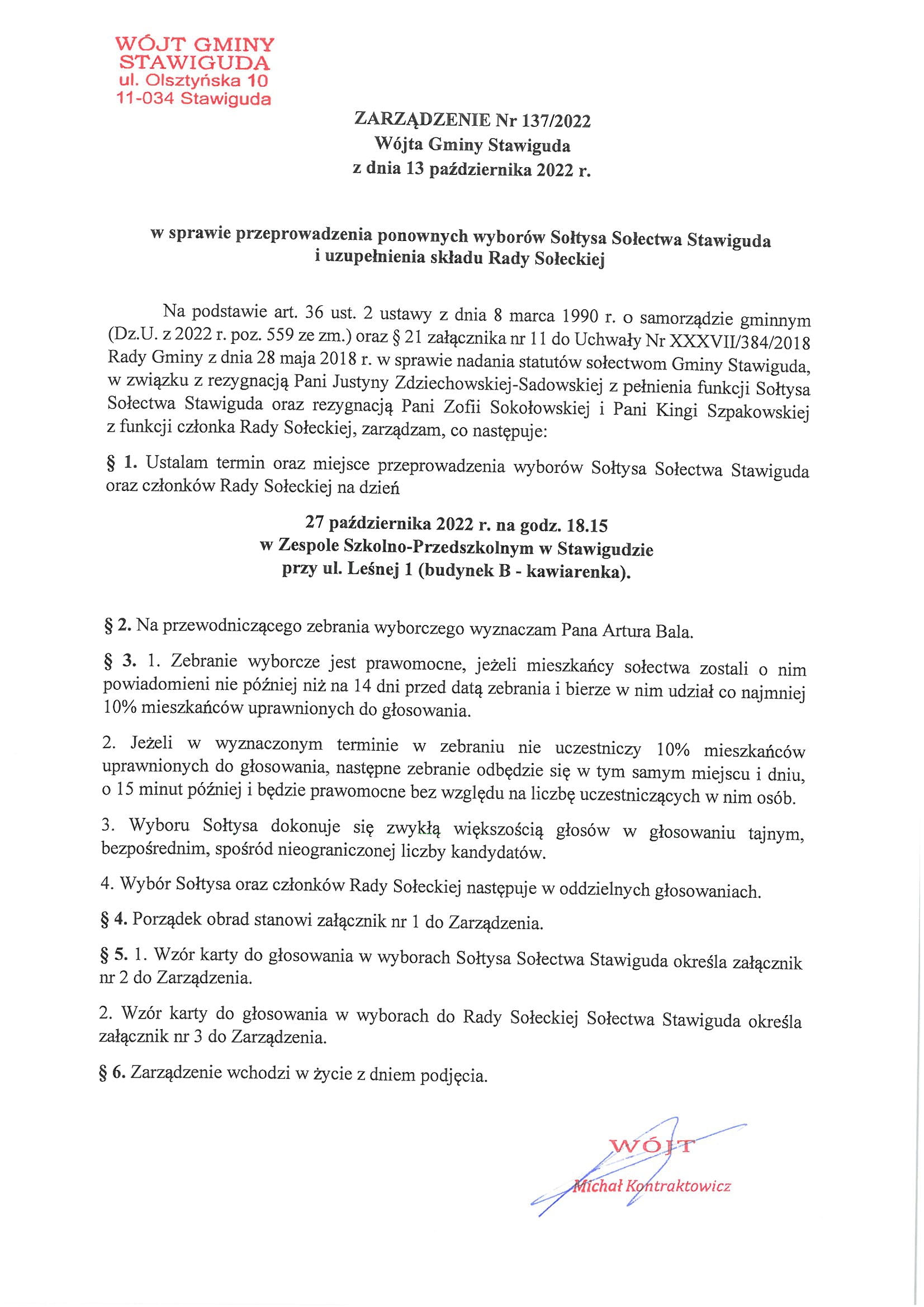 Zarządzenie ws. Ponownych wyborów na Sołtysa Sołectwa Stawigudy oraz uzupełnienia składu Rady Sołeckiej