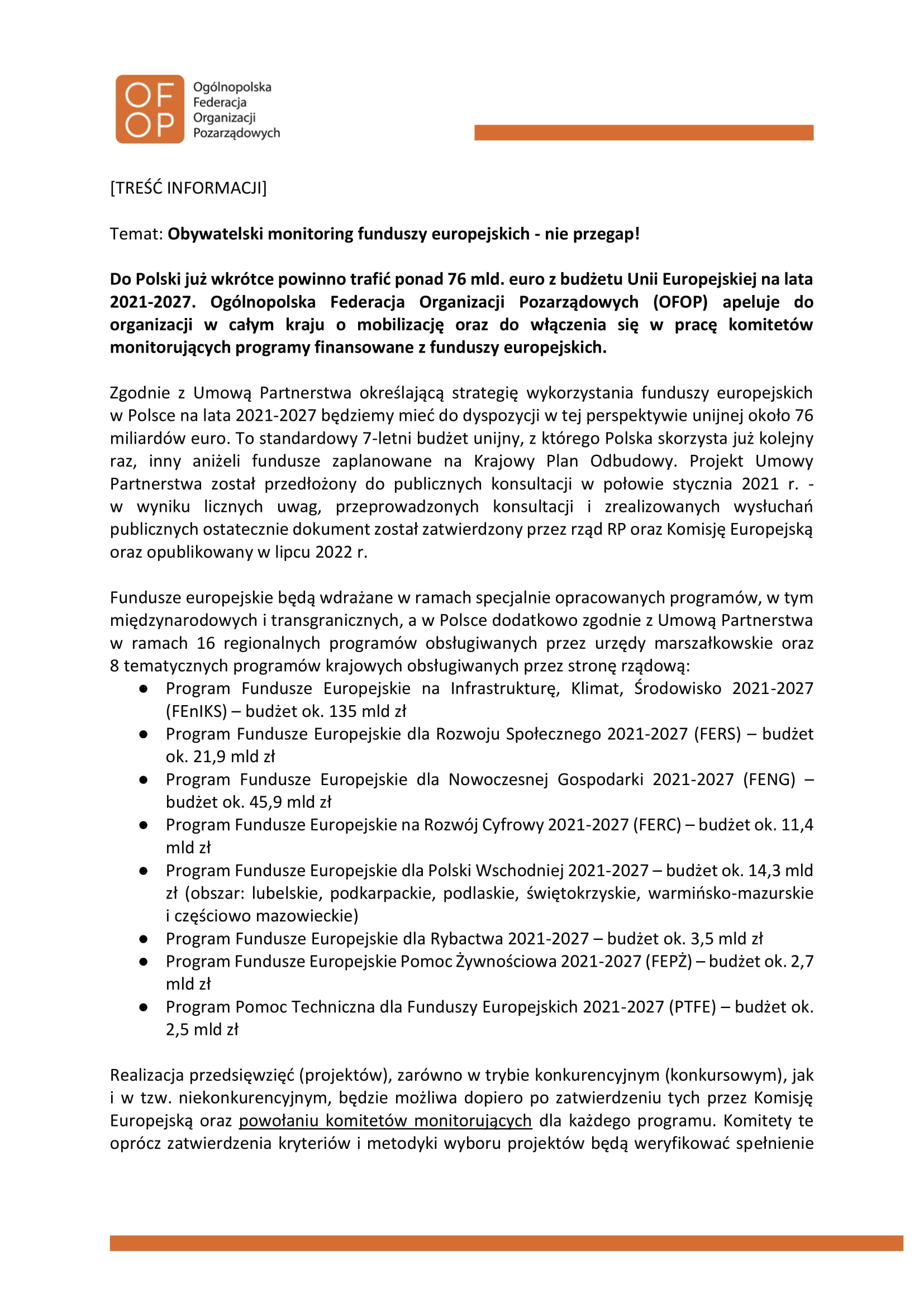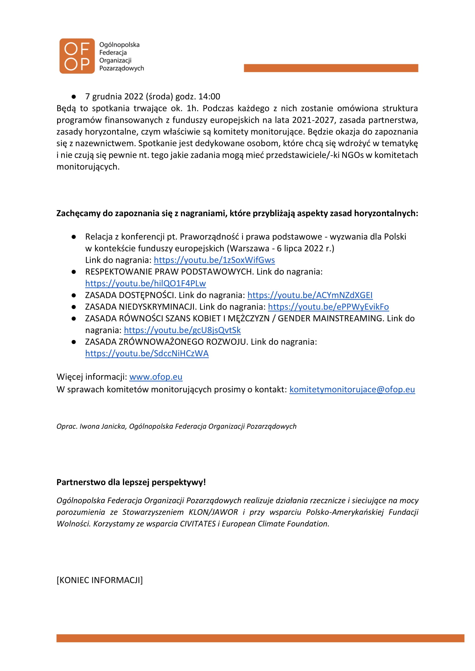 W sprawach komitetów monitorujących prosimy o kontakt: