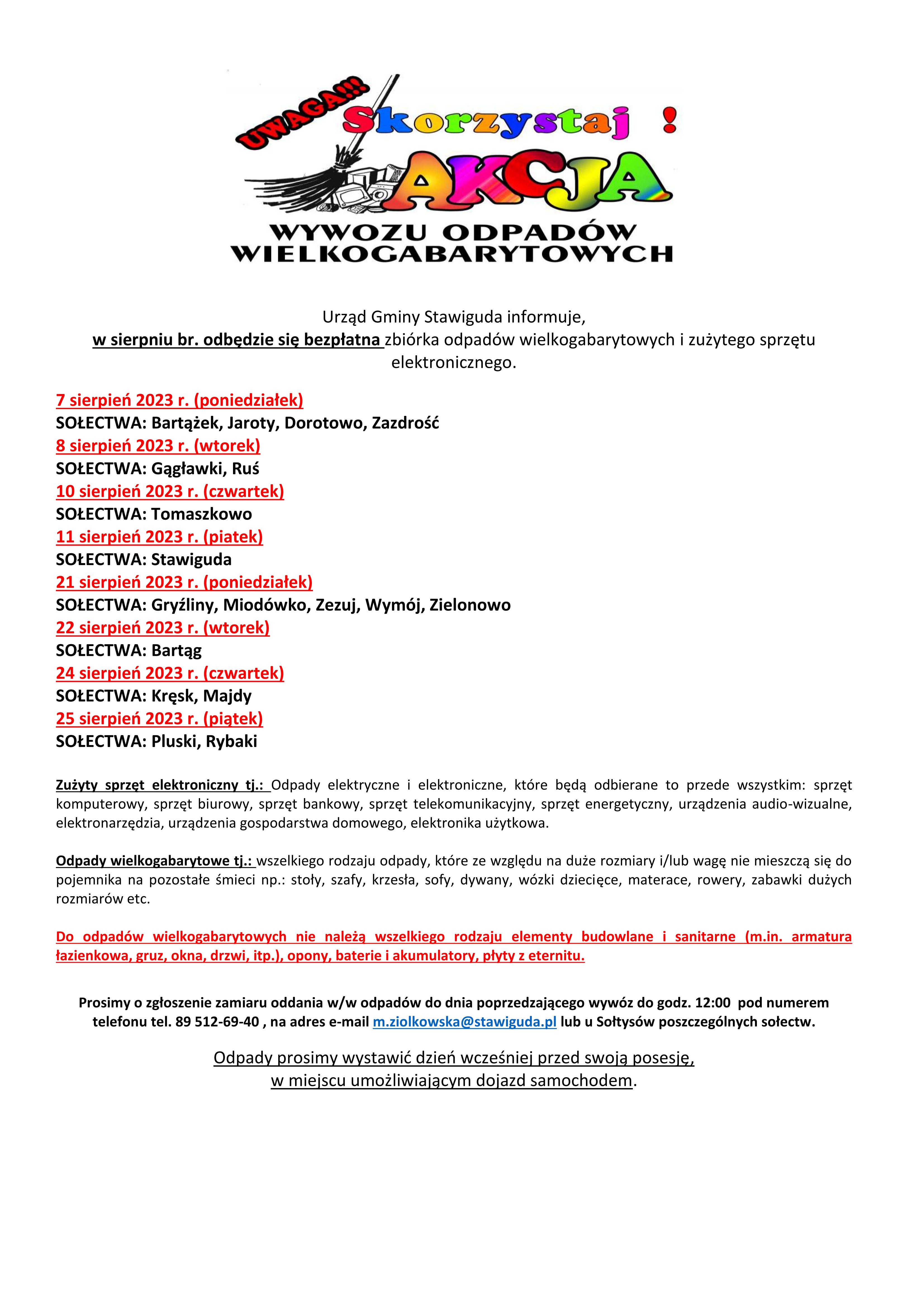 Zbiórka odpadów wielkogabarytowych - sierpień 2023 - aktualizacja