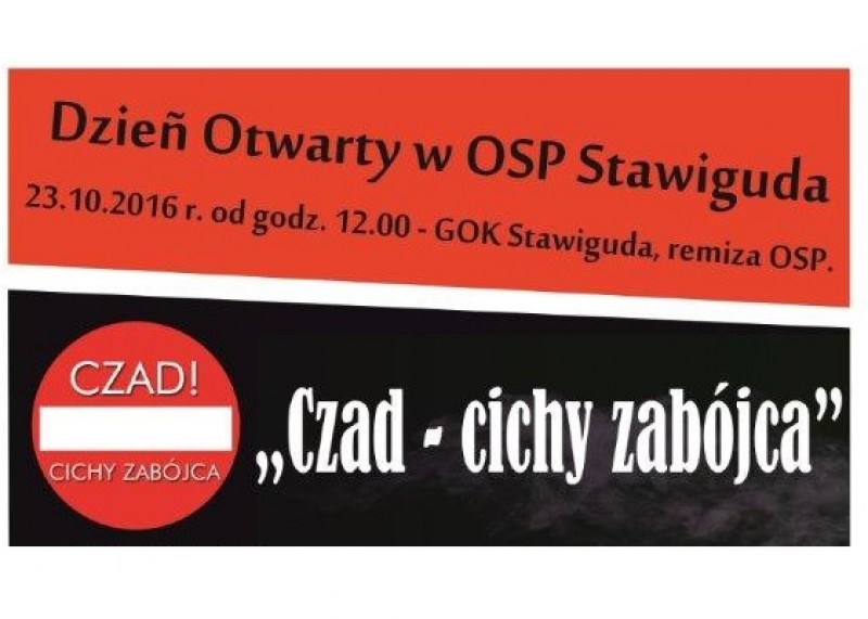 Zarząd Ochotniczej Straży Pożarnej w Stawigudzie zaprasza mieszkańców Gminy Stawiguda na Dzień Otwarty Jednostki, który odbędzie się 23 października od godziny 12.00 na terenie OSP oraz Gminnego Ośrodka Kultury w Stawigudzie. Wydarzeniu towarzyszyć będzie kampania bezpieczeństwa dotycząca sezonu grzewczego pod hasłem „Czad - Cichy Zabójca”.