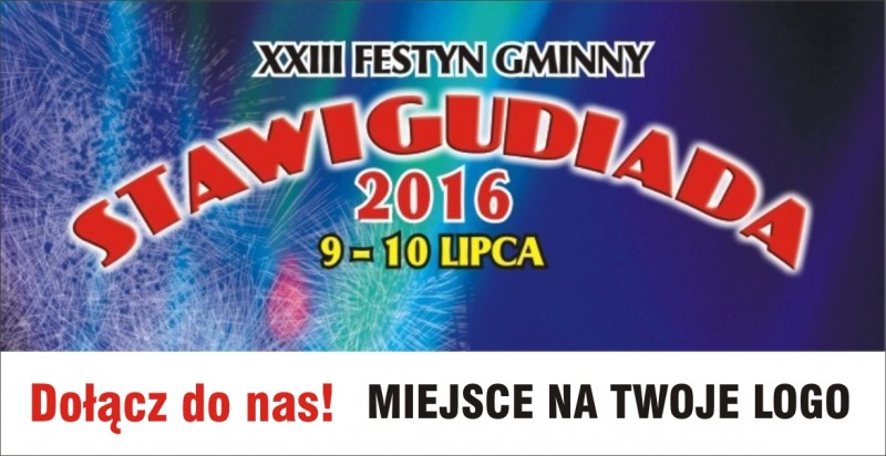 Gmina Stawiguda wraz z Gminnym Ośrodkiem Kultury w Stawigudzie serdecznie zapraszają do uczestnictwa i partnerstwa w organizowanym po raz XXIII FESTYNIE GMINNYM „STAWIGUDIADA 2016”. Wydarzenie to odbędzie się od 8 do 10 lipca 2016 r.