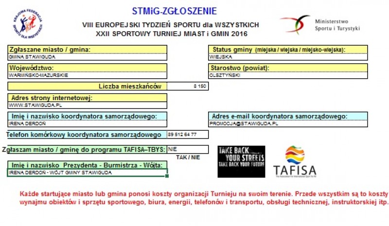 Gmina Stawiguda przyłączyła się do VIII Europejskiego Tygodnia Sportu dla wszystkich. W sobotę 28 maja br. zapraszamy wszystkich Państwa bardzo serdecznie na boisko w Stawigudzie, gdzie reprezentanci Polski będą walczyć o Puchar Polski