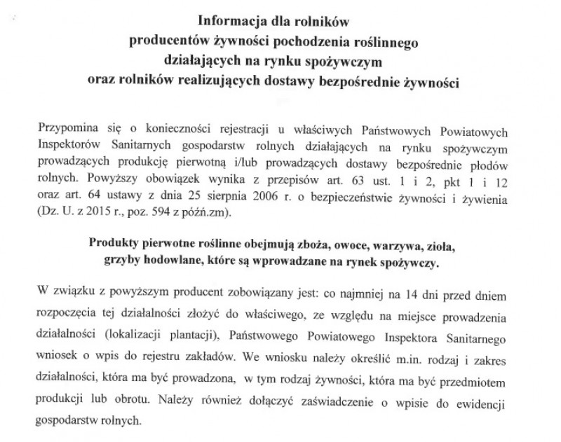 Informacja dla rolników, producentów żywności pochodzenia roślinnego działających na rynku spożywczym oraz rolnikó realizujących dostawy bezpośrednie żywności
