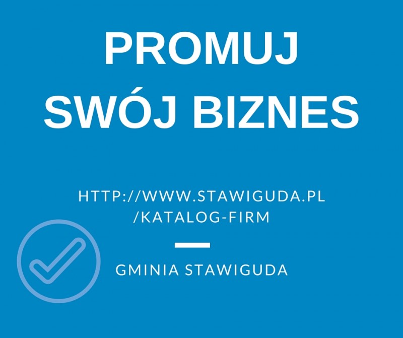 Informacja dla przedsiębiorców z terenu Gminy Stawiguda: na stronie http://www.stawiguda.pl/katalog-firm została uruchomiona wyszukiwarka firm. Prosimy o korzystanie z opcji "Zgłoś firmę" i dodawanie swoich firm. Można dodawać logo firmy i zdjęcia. Po zgłoszeniu i weryfikacji, informacja o przedsiębiorstwie pojawia się już na stronie.