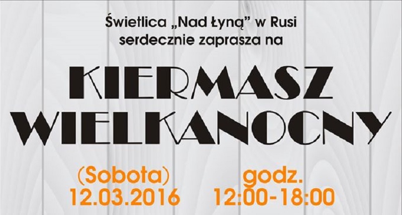 Świetlica "Nad Łyną" w Rusi serdecznie zaprasza na Kiermasz Wielkanocny, który odbędzie się 12.03.2016 (sobota) w godzinach 12:00-18:00.