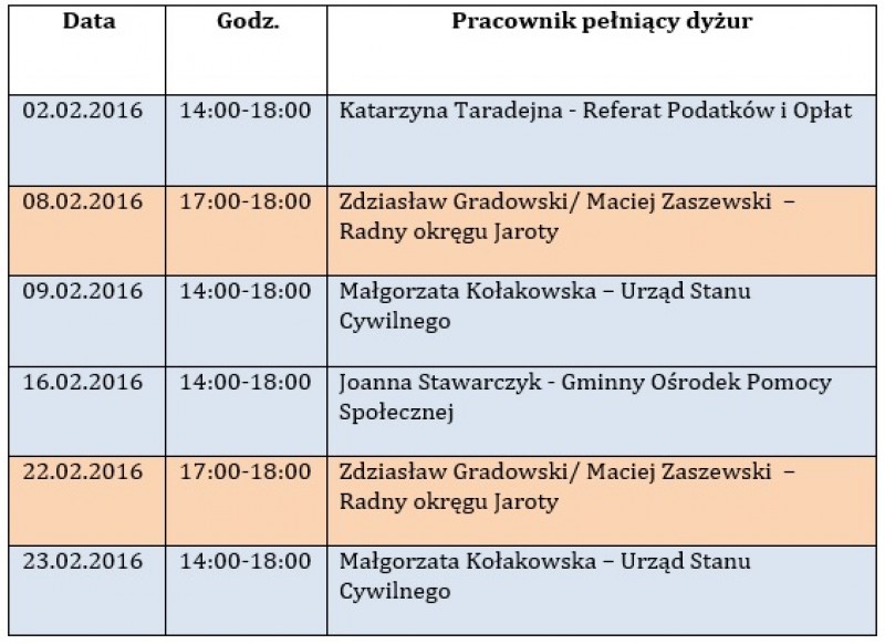 Dyżury w Punkcie Obsługi Interesanta