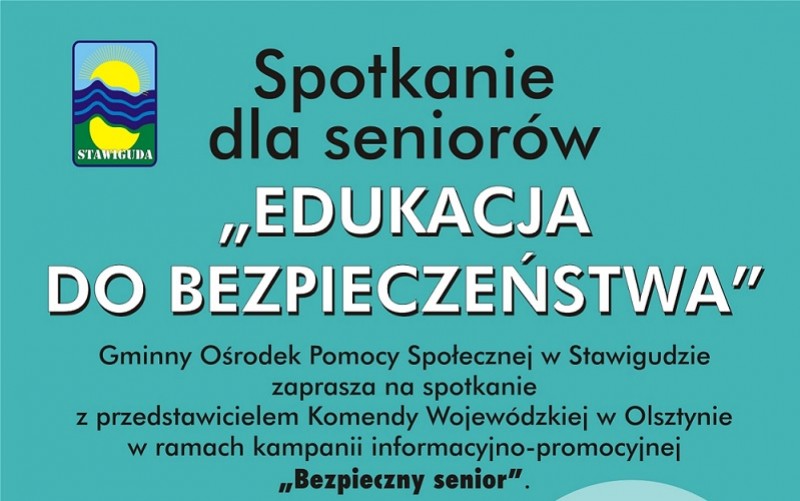Spotkanie dla seniorów :Edukacja do bezpieczeństwa", Gminny Ośrodek Pomocy Społecznej w Stawigudzie zaprasza na spotkanie z przedstawicielem Komendy Wojewózkiej w Olsztynie w ramach kampanii informacyjno-promocyjnej "Bezpieczny senior"