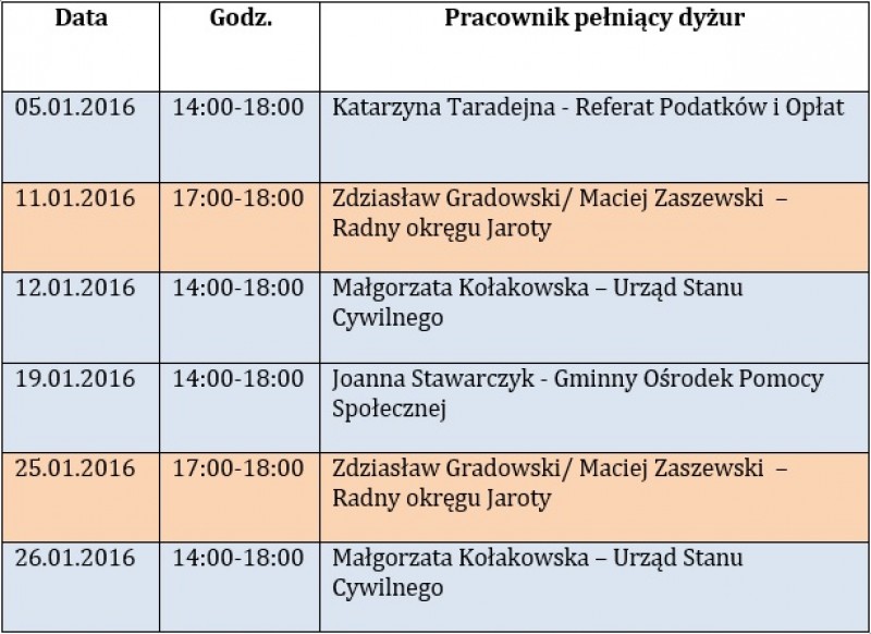 Dyżury w Punkcie Obsługi Interesanta