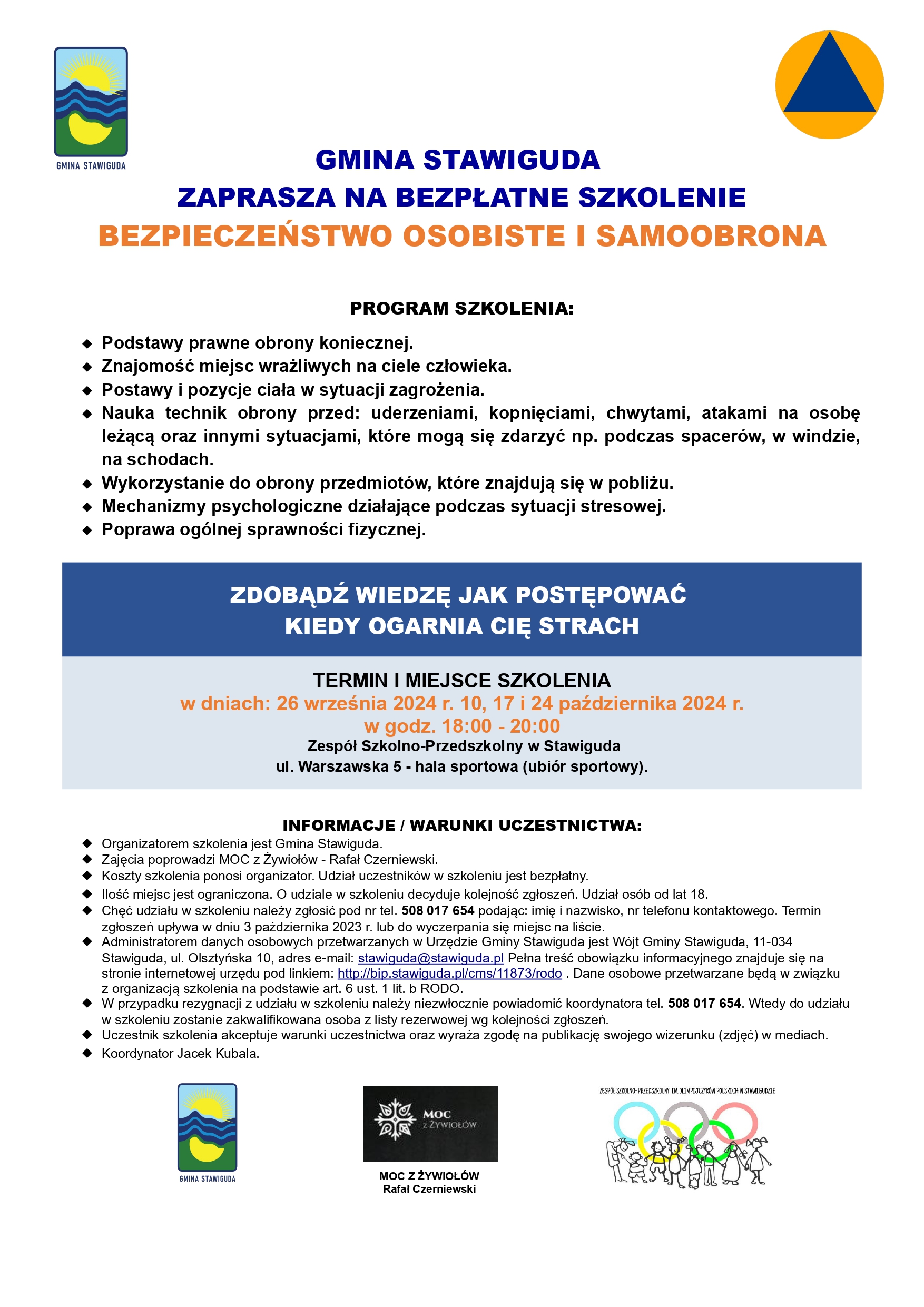 Zapraszamy mieszkańców Gminy Stawiguda na cykl bezpłatnych szkoleń z bezpieczeństwa osobistego i samoobrony